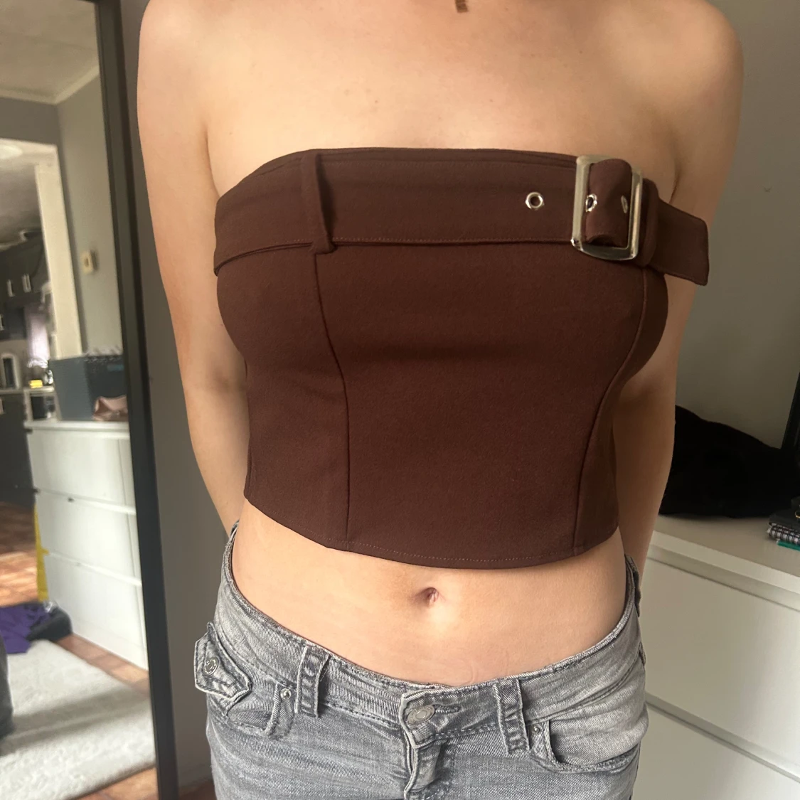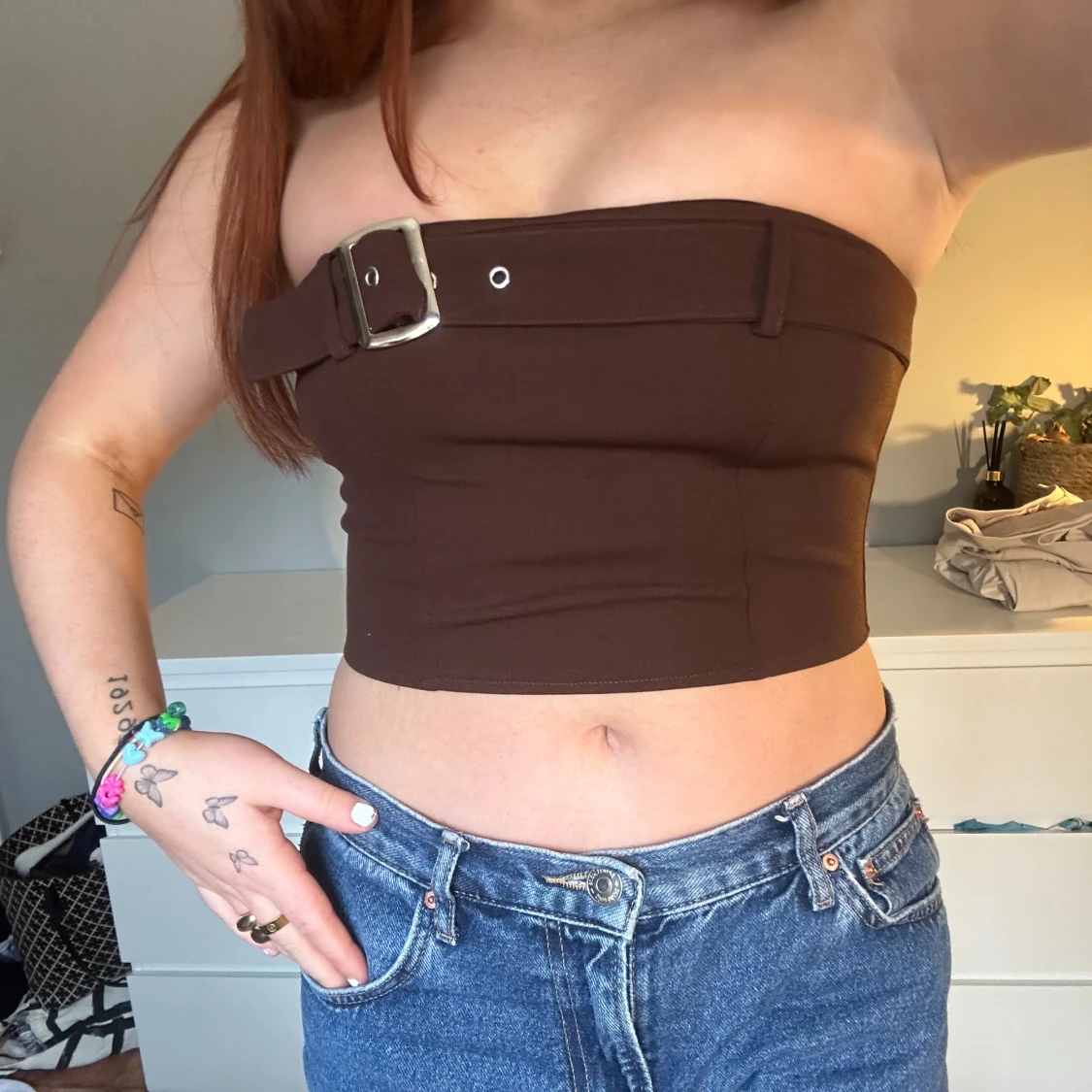 Denna topp är från Nelly i stolen M. Men passar min kompis som är storlek xs. Endast använd tre gånger ca.
