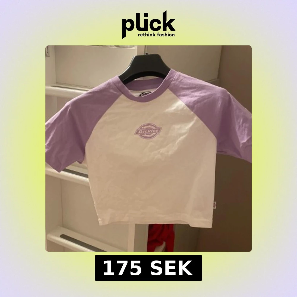 Säljer en cool vit och lila t-shirt från Dickies. Den har korta ärmar och ett tryck med Dickies-loggan på framsidan. Perfekt för en avslappnad stil. Tröjan är aldrig använd och i helt nytt skick.