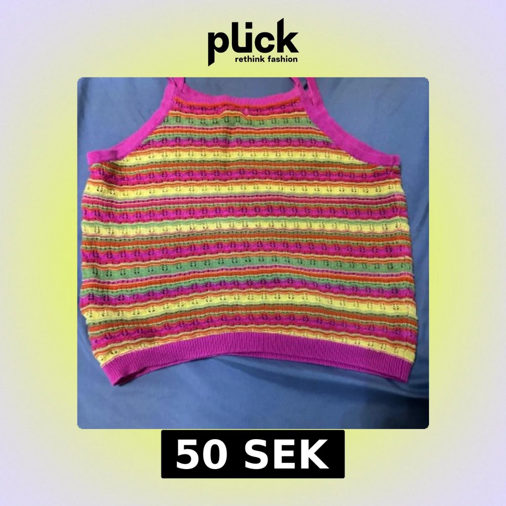 Säljer en färgglad randig linnetopp från Primark. Toppen har ett mönster i rosa, gul, grön och orange med smala axelband. Perfekt för sommarens varma dagar!