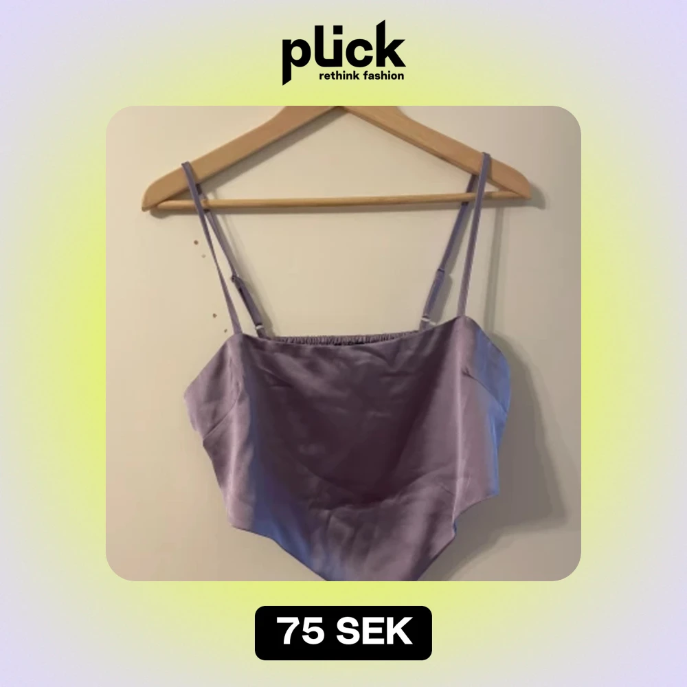 Festligt lila linne i glansigt material som är kantat på framsidan och har resår på baksidan. Mycket snyggt oxh knappt använt!