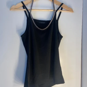 Söt festtopp köpt second hand, aldrig använd. Har små diamanter längs kragen och är i ett stretchigt material.