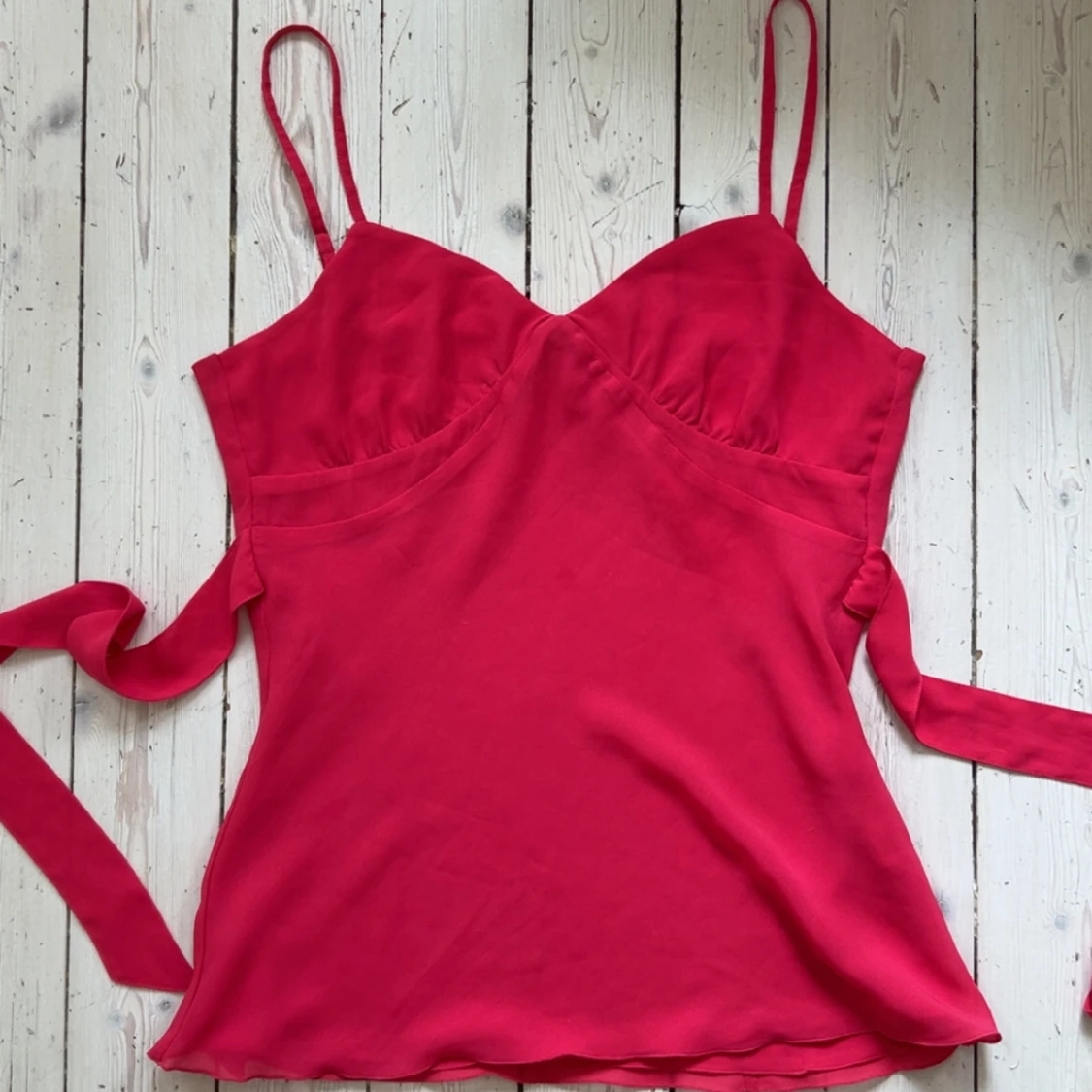 Snygg rosa topp frĂ„n Reserved med smala axelband och omlottknytning i midjan. KlĂ€nningen har en v-ringad byst och figurnĂ€ra passform som framhĂ€ver siluetten. Storlek M đđ Köpt för 400kr frĂ„n Vinted. Aldrig anvĂ€nd, för stor för mig! Skriv om ni har nĂ„gra frĂ„gor!