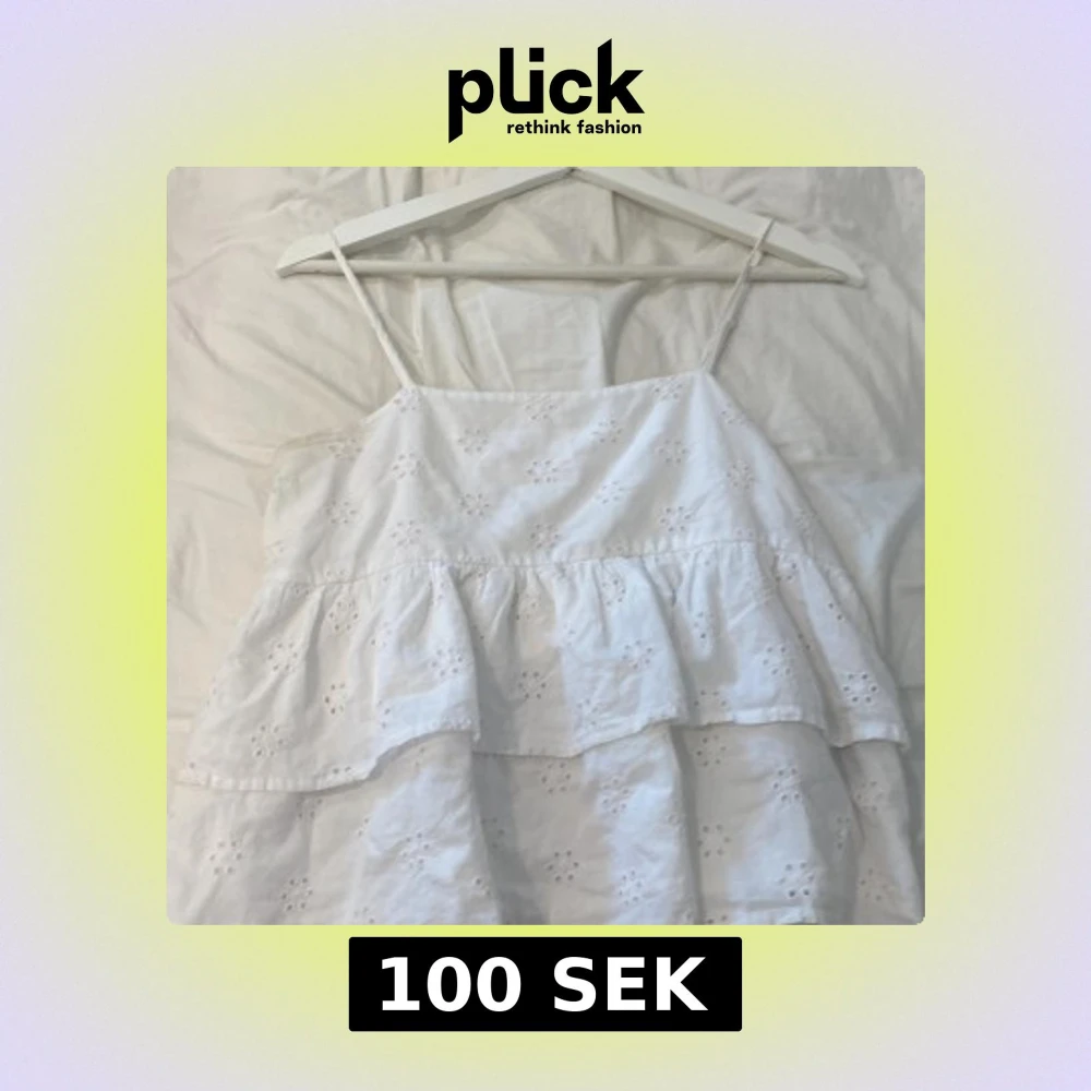 Superfin vit linnetopp från Gina Tricot med tunna axelband och broderade blommor. Toppen har dubbla volanger och är luftig, perfekt för varma dagar. Söt och enkel att matcha med jeans eller kjol.