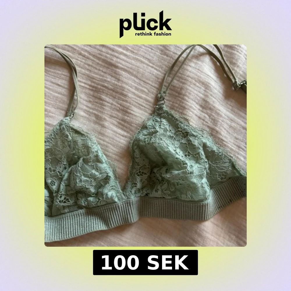 Säljer en vacker grön spets bralette från Hunkemöller. Den har justerbara axelband och en ribbad kant nedtill för extra komfort. Perfekt för en stilren och bekväm look.