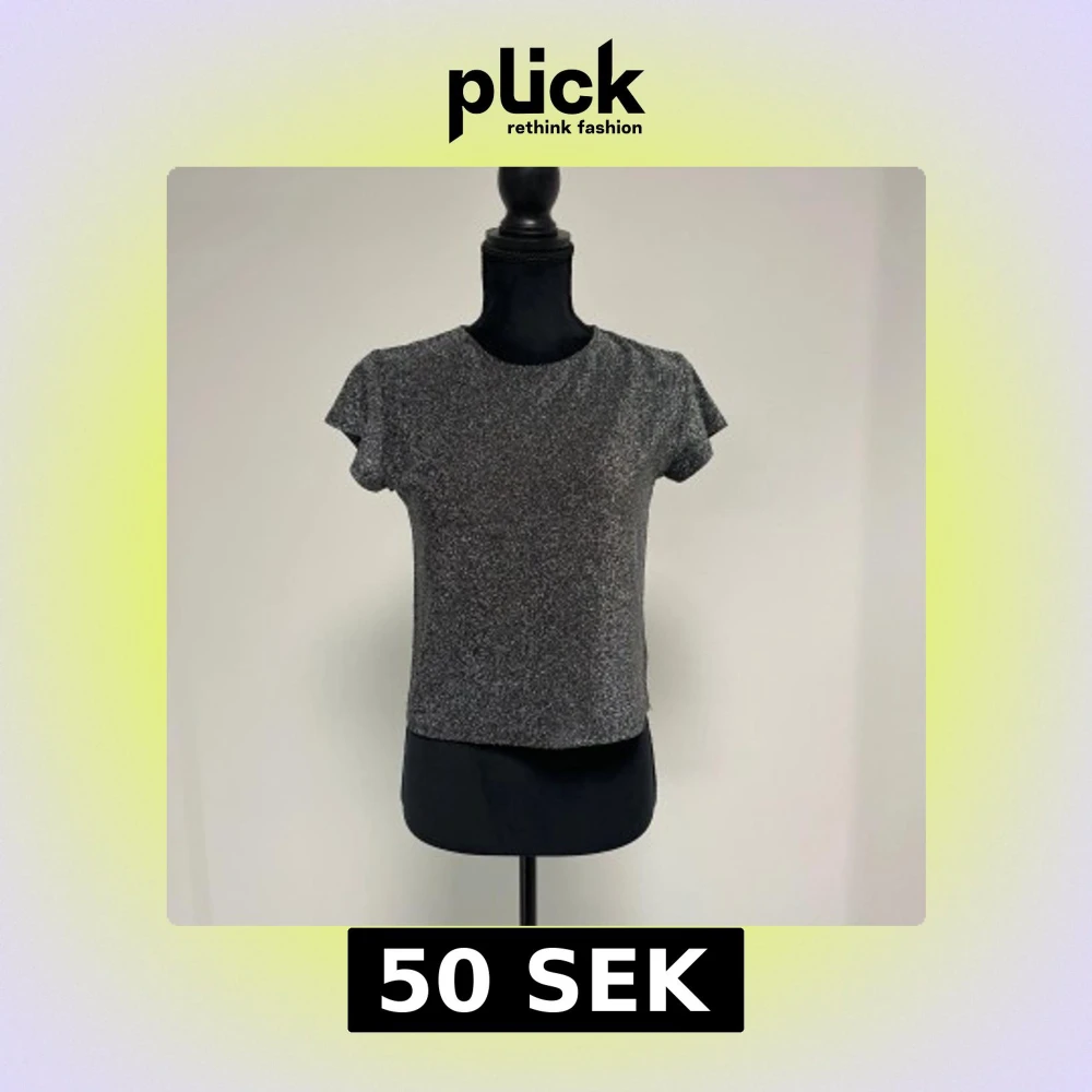 Glittrig topp från Kappahl, är i stl 146/152 (barn) men har används som en croppad t shirt för stl XXS/XS🪩🖤✨