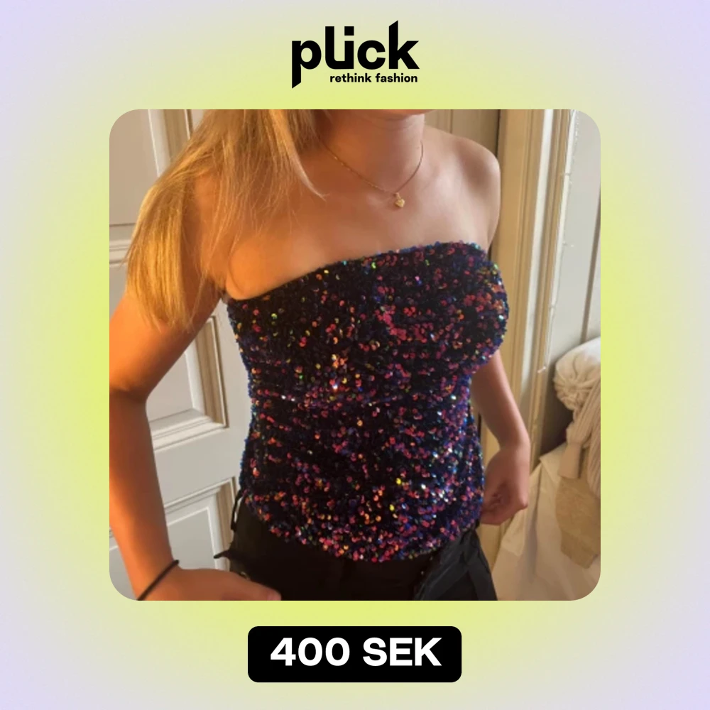 Säljer nu denna sååå coola glittriga banduåtoppen ✨💞✨💞passar perfekt till fest! Säljer för att den tyvärr blivit för liten. Den är bara provad, därav priset 🫶🏼