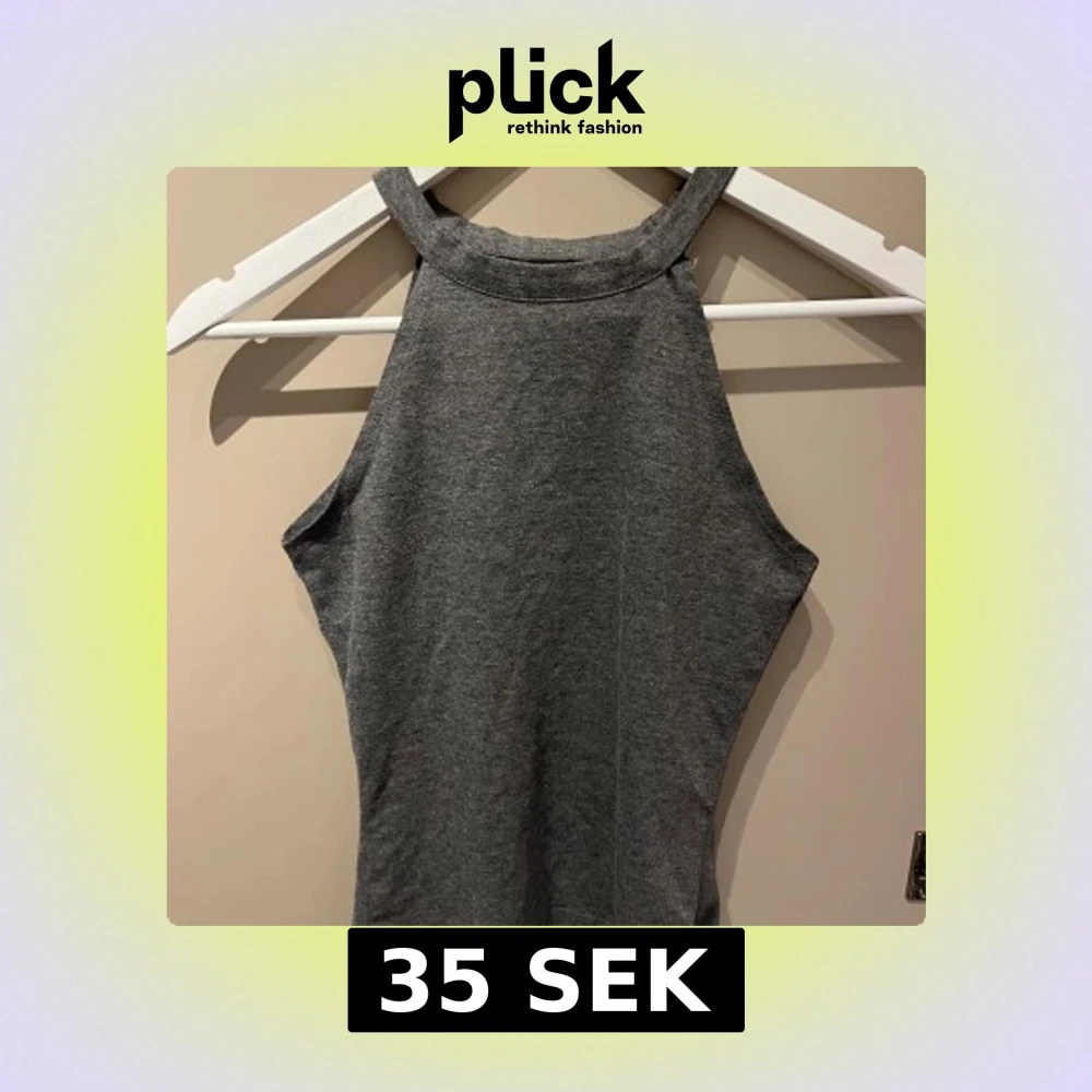 Säljer en stilren grå ärmlös topp från Gina Tricot. Perfekt för varma dagar eller som ett lager under en jacka. Toppen har en enkel design med rund halsringning.