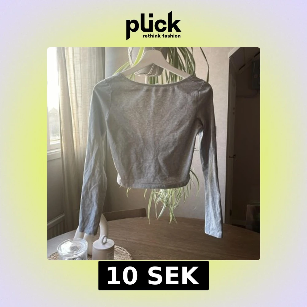 Säljer en enkel och stilren grå croppad topp med lång ärm och öppen rygg. Perfekt att matcha med höga jeans eller kjol för en trendig look.