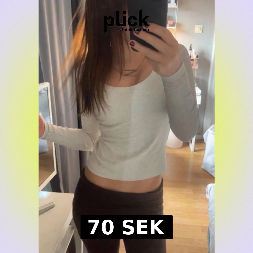 Säljer en enkel och fräsch grå långärmad topp med croppad passform. Toppen har rundad halsringning och är figurnära, perfekt att styla med höga jeans eller kjol. Materialet känns mjukt och stretchigt, vilket gör den bekväm att bära hela dagen.