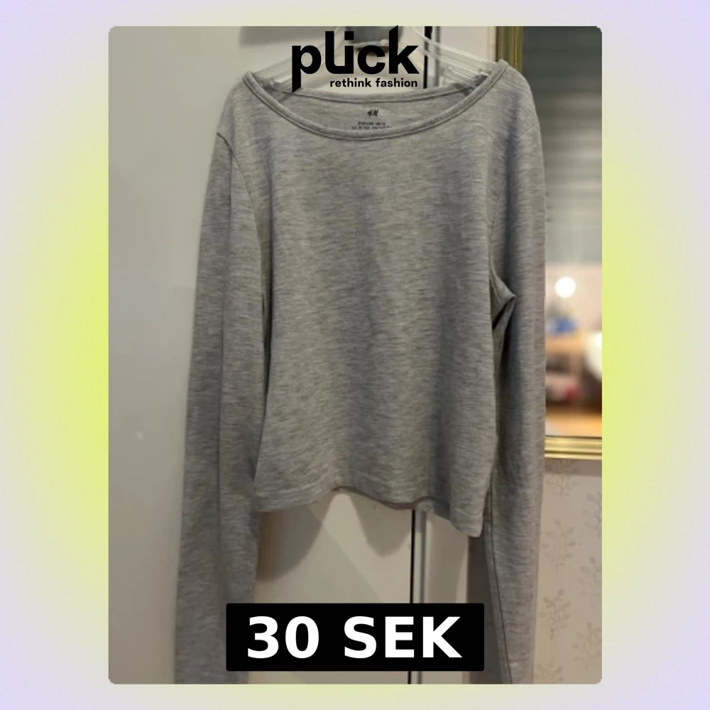 Säljer en enkel och stilren grå långärmad topp från H&M i storlek 158. Toppen har en rundad halsringning och är croppad i modellen.