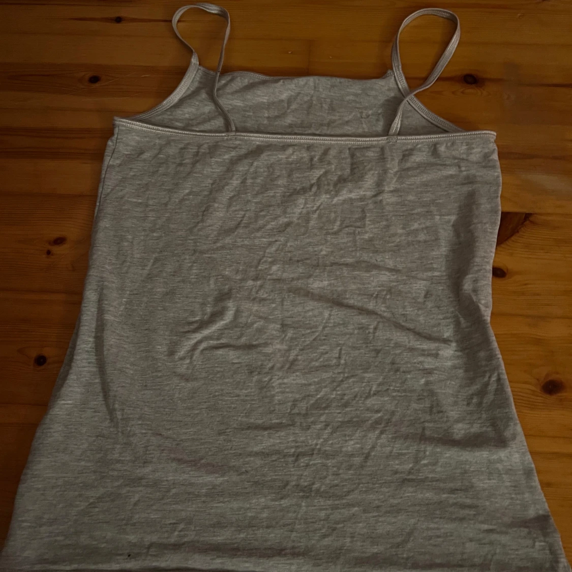 Säljer en enkel och snygg grå linnetopp från H&M. Toppen har smala axelband och är perfekt för varma dagar. Den är gjord i ett mjukt och bekvämt material.