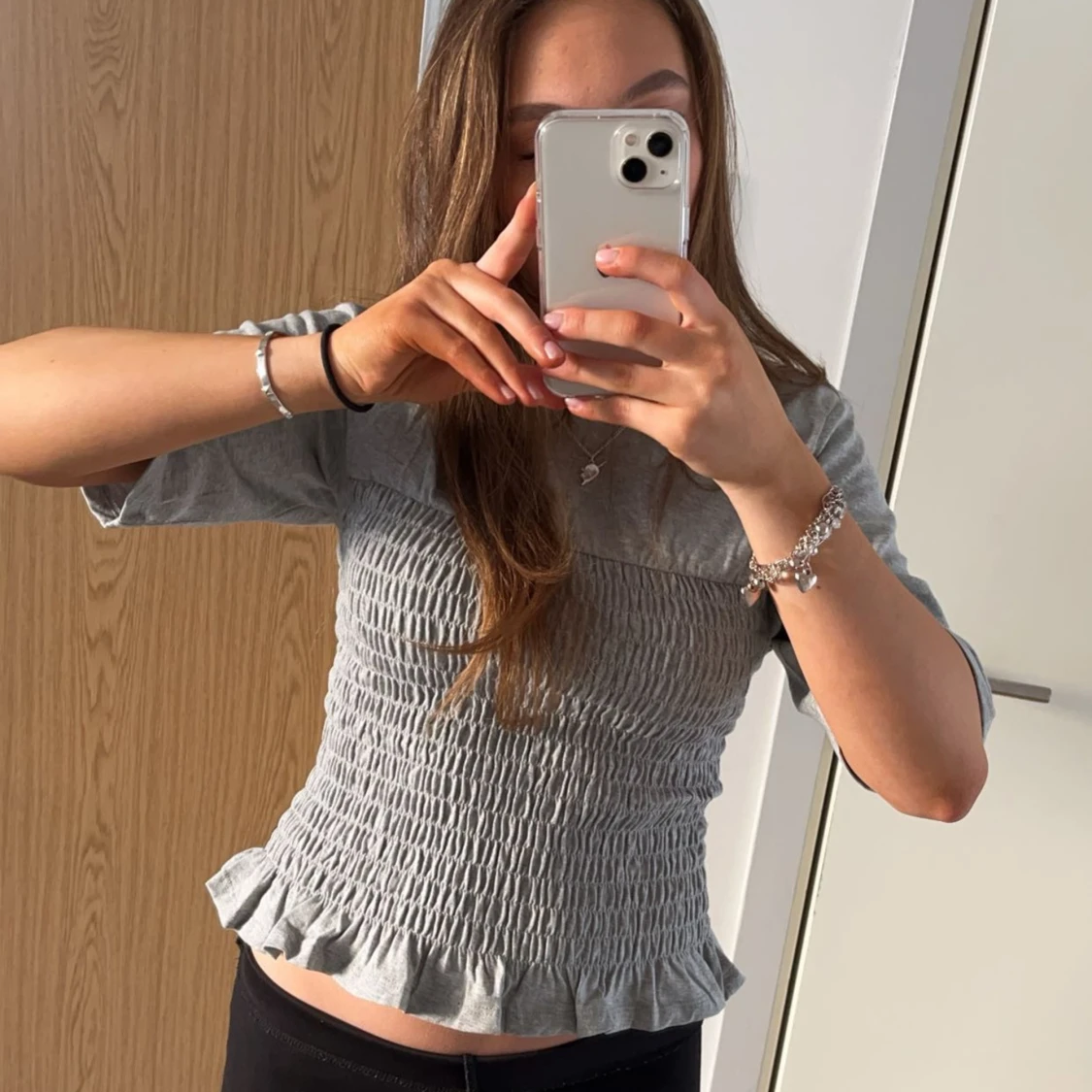 Grå smockad topp