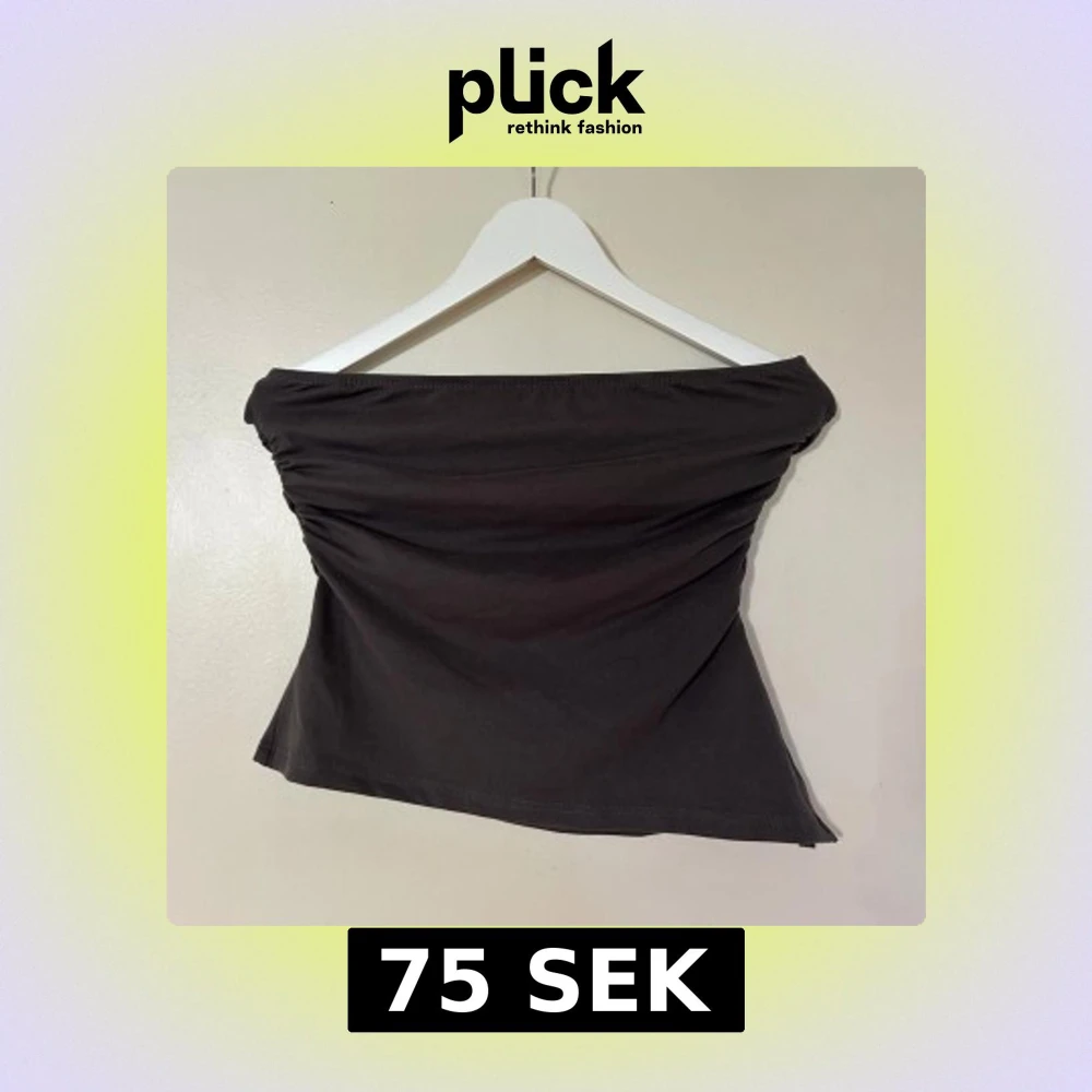Säljer en stilren mörkgrå tubtopp med rynkade detaljer på sidorna. Perfekt för en enkel och chic look. Passar bra till både jeans och kjol.