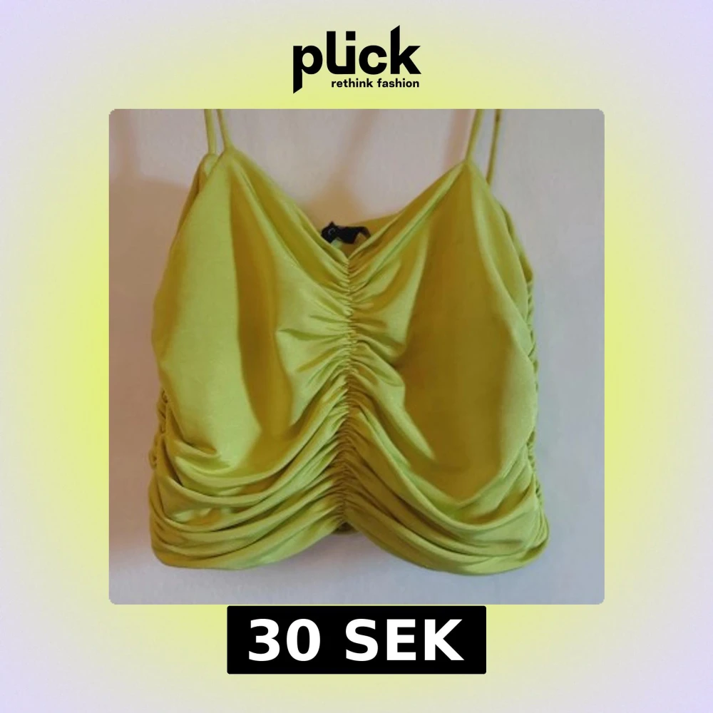 Snygg grön linnetopp med smala axelband och draperad design. Perfekt för en somrig look med en unik stil. Toppen har en åtsittande passform och är tillverkad i ett mjukt material.