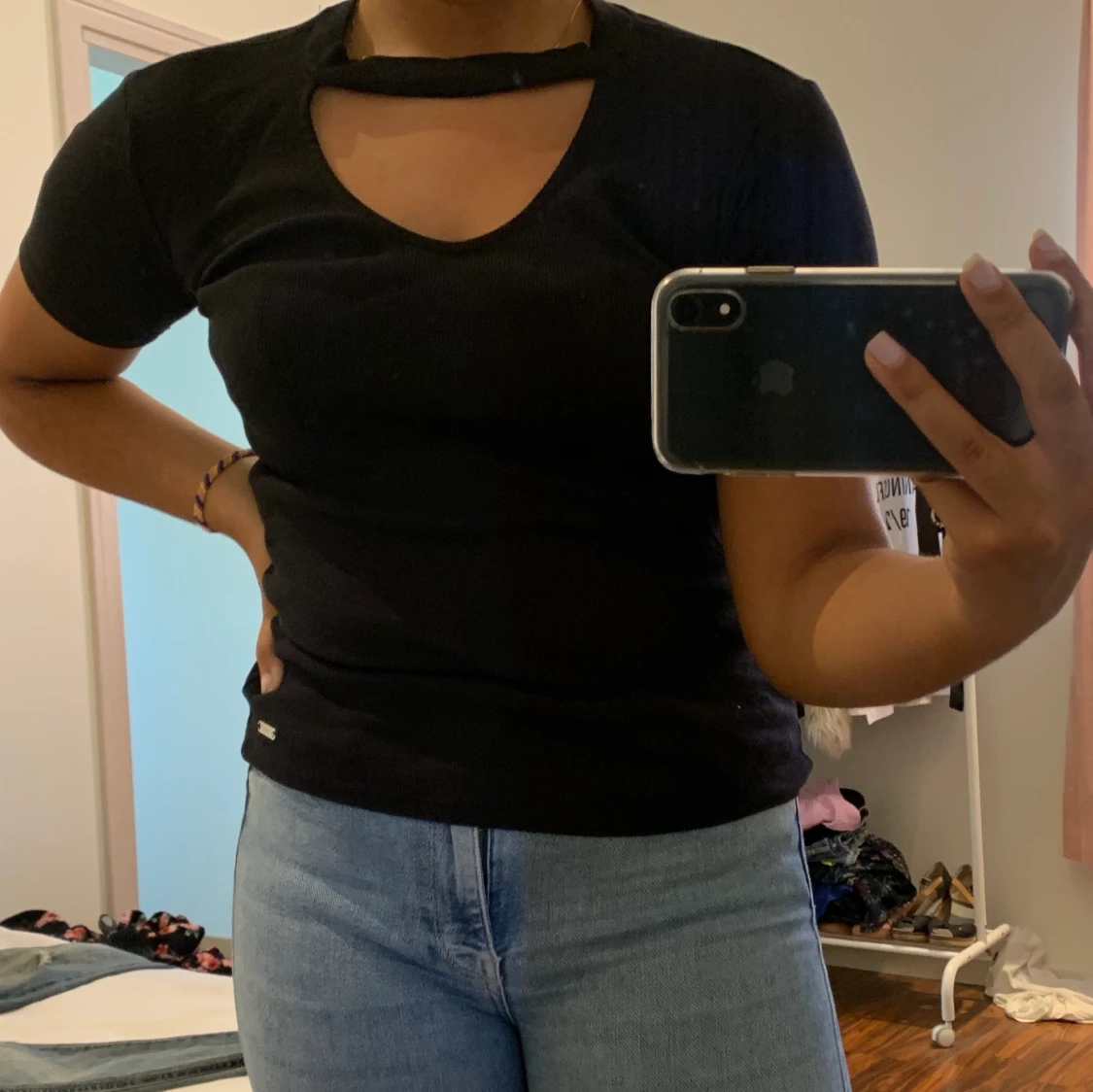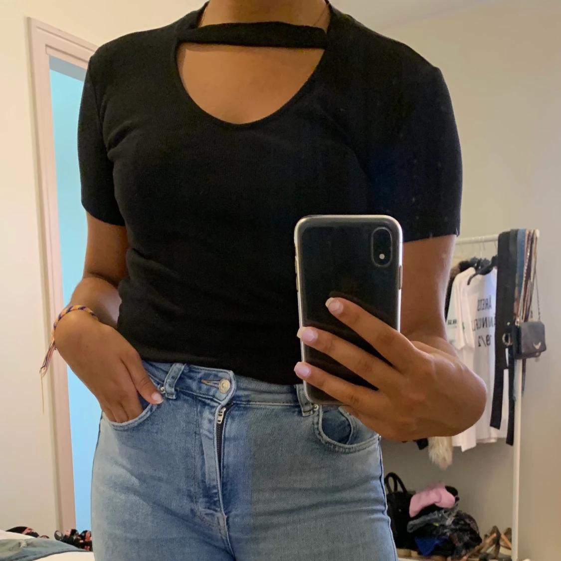 Svart ribbad topp från Guess i nyskick, endast använd en gång. Toppen är i storlek S men passar även som en M, inköpspriset var 250kr. Köparen står för frakt.