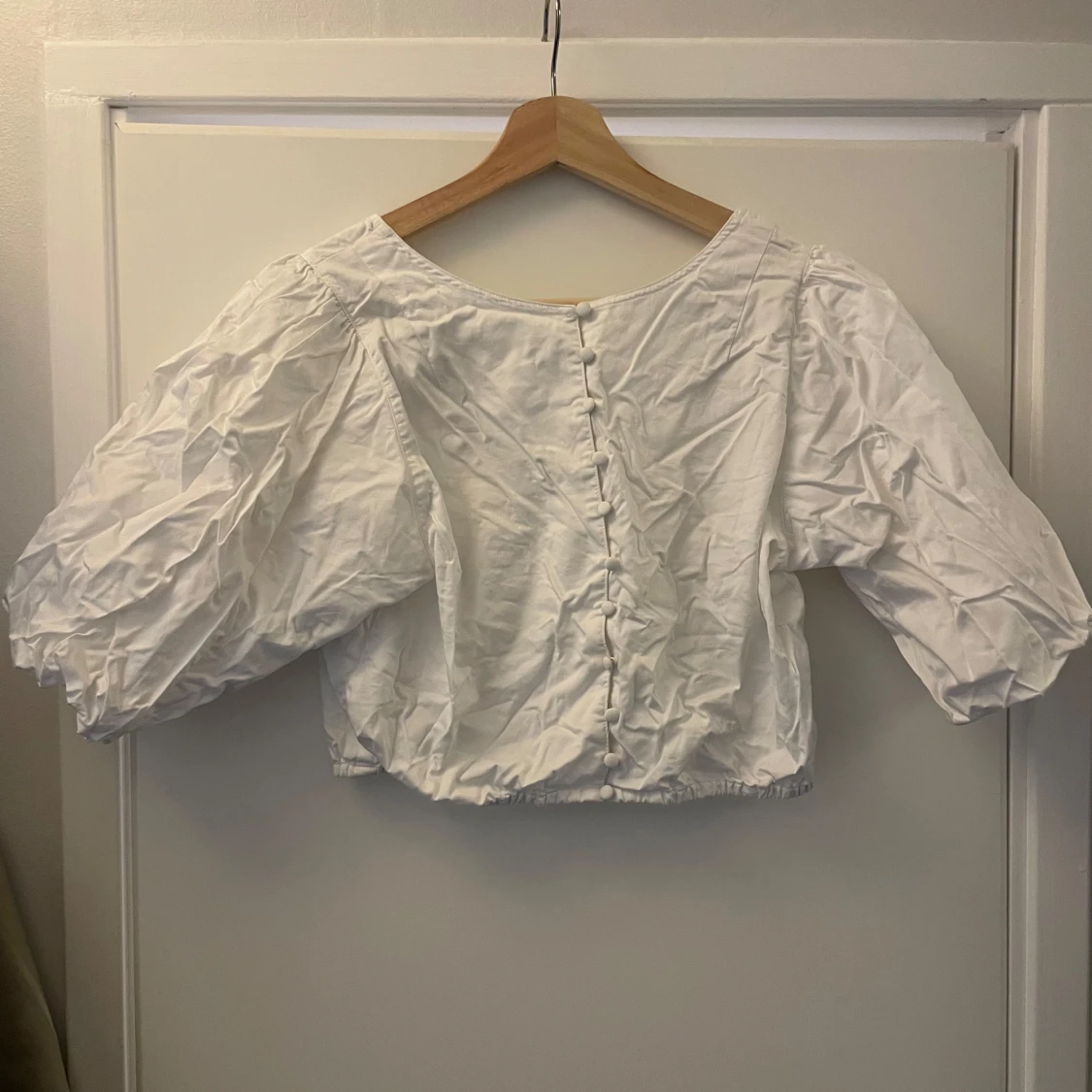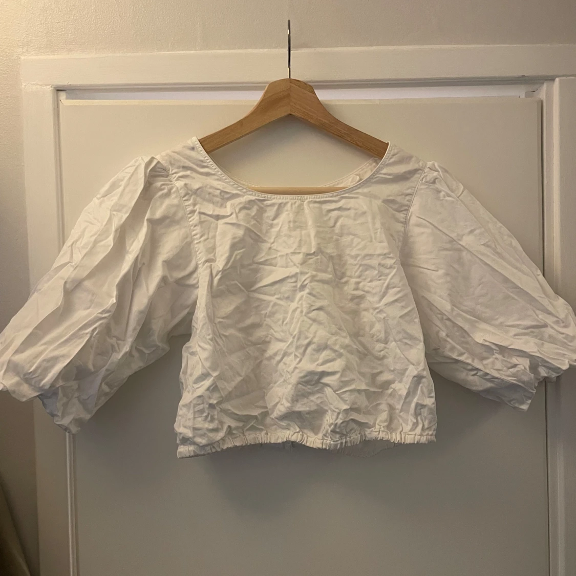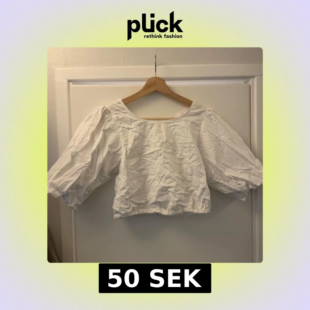 Jättesöt topp med puffärm. Behöver strykas innan användning. Går att använda åt båda hållen. Storlek 38.