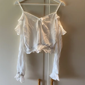 Supersöt topp med både linne band och långa ärmar, lite off shoulder stuk på. Aningen genomskinlig.