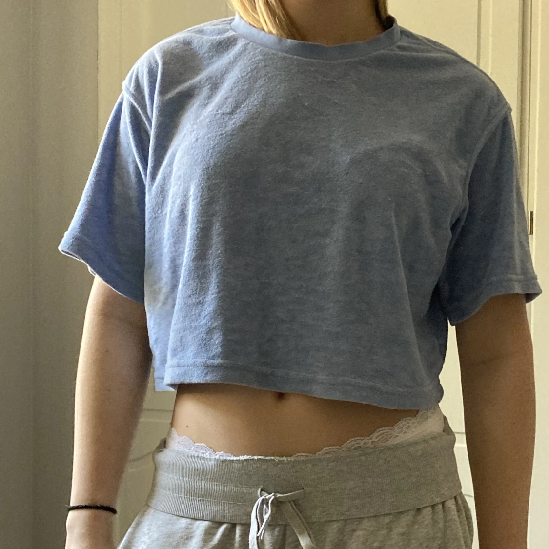 Ljusblå kroppad topp i från hm, väldigt skön och perfekt över en bikini i sommar💓💓🤩