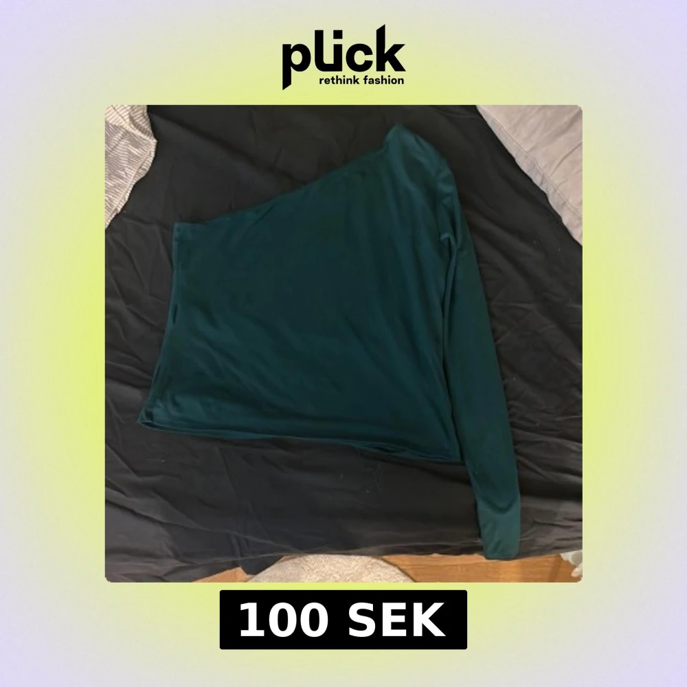 Säljer en mörkgrön one shoulder topp från H&M i storlek L. Toppen har lång ärm på ena sidan och ärmlös på andra, vilket ger en snygg asymmetrisk look. Perfekt för dig som vill sticka ut lite extra med en stilren och trendig topp. !köpare står för frakt!
