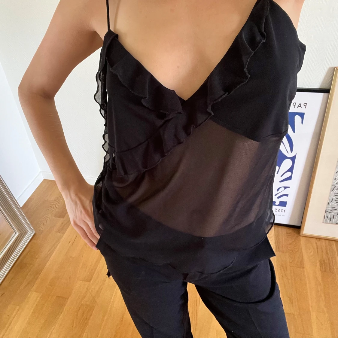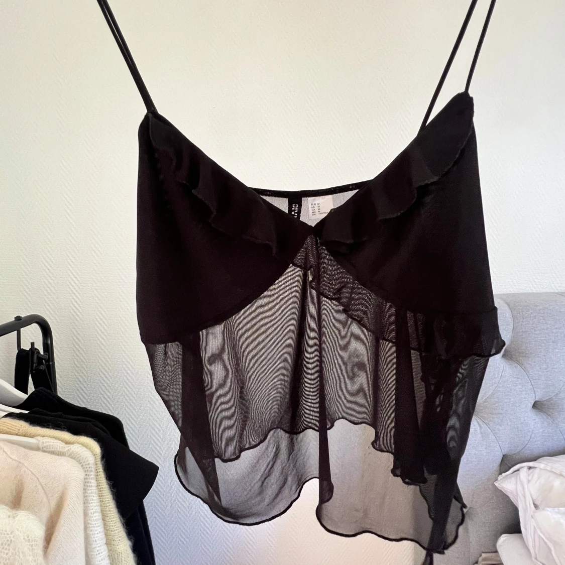 Två transparenta linne-toppar från HM. Den svarta är använd ett par gånger och den gråa är aldrig använd. Båda ingår i priset.