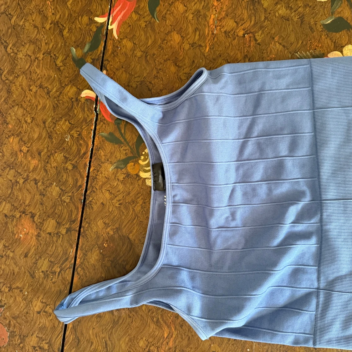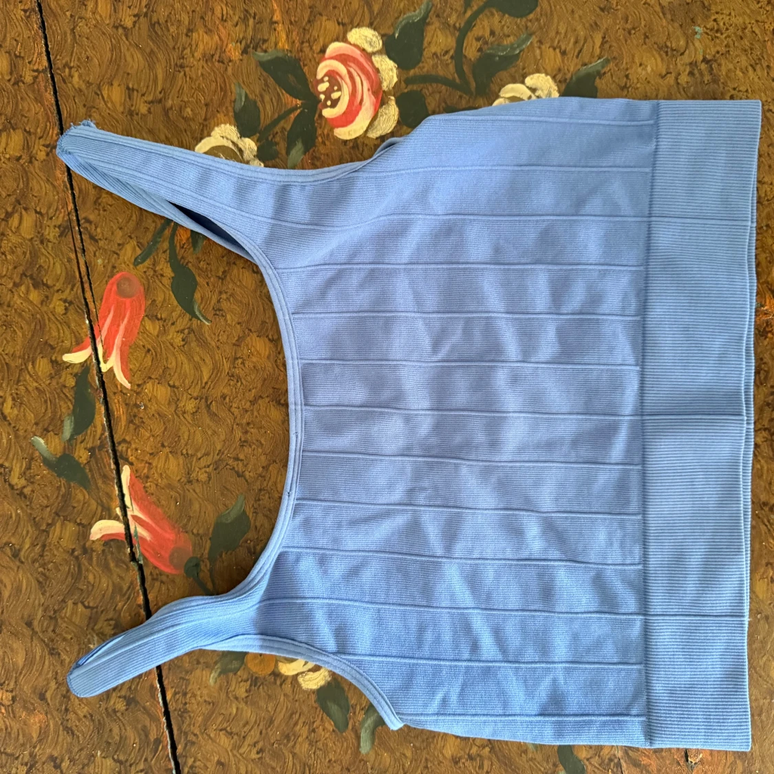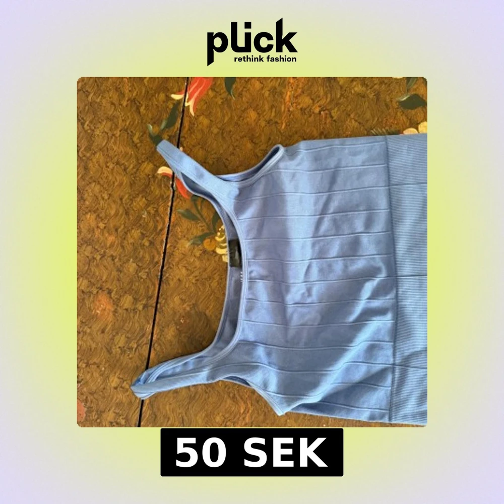 Säljer en ljusblå ribbad linnetopp från H&M Sport. Toppen är ärmlös med breda axelband och har en sportig, croppad passform. Perfekt för träning eller en chill vardagslook. Materialet är stretchigt och bekvämt.