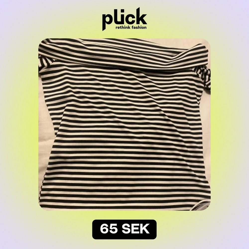 Svart vit randig off shoulder topp, som man kan vika ned kragen på Använd ungefär 3 gånger 89% polyester 11% elastan