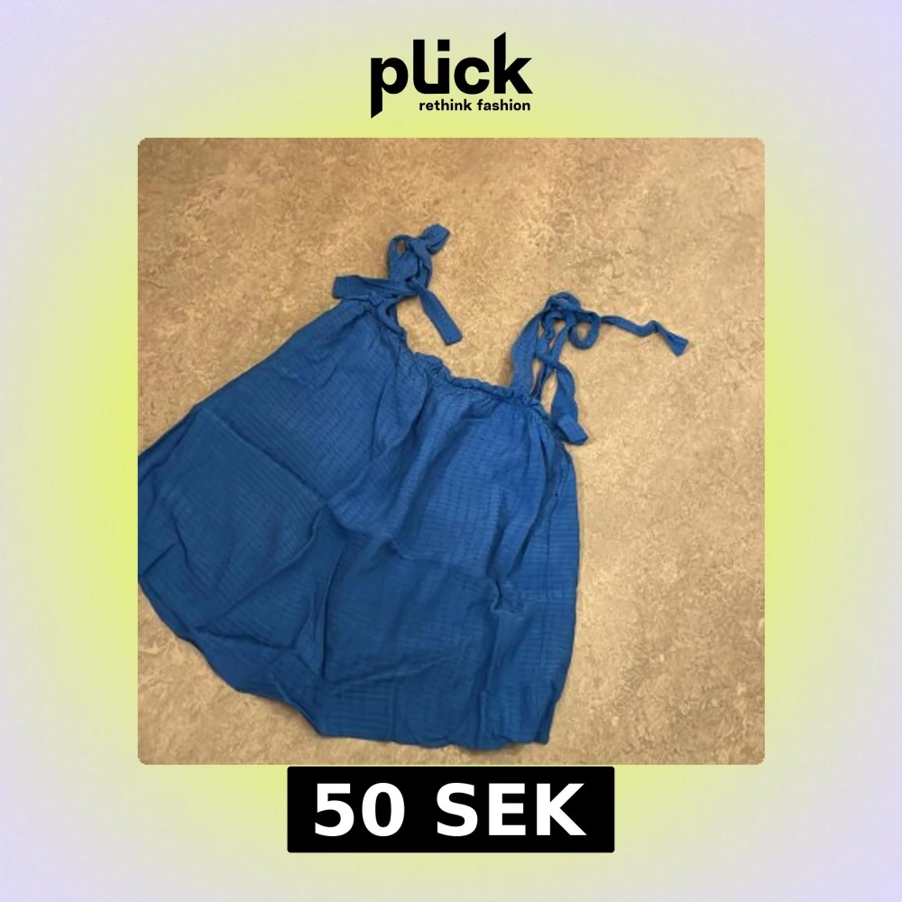 Säljer en blå linnetopp med knytband på axlarna. Toppen har en luftig passform och ett diskret rutmönster. Perfekt för varma sommardagar!