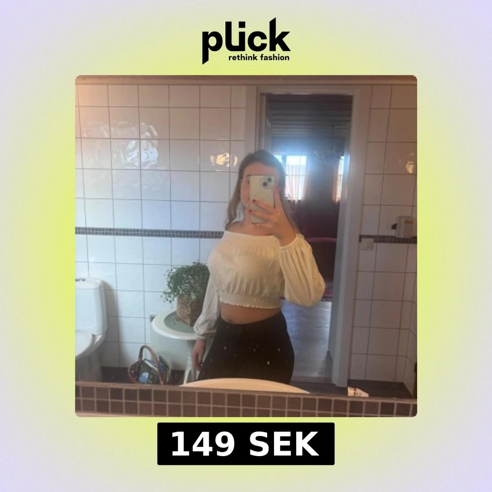Superfin croppad offshoulder topp i vit med långa puffiga ärmar och smockdetaljer vid halsringning och midja. Perfekt för dig som gillar romantisk och trendig stil. Tunn och luftig, passar till både jeans och kjol.