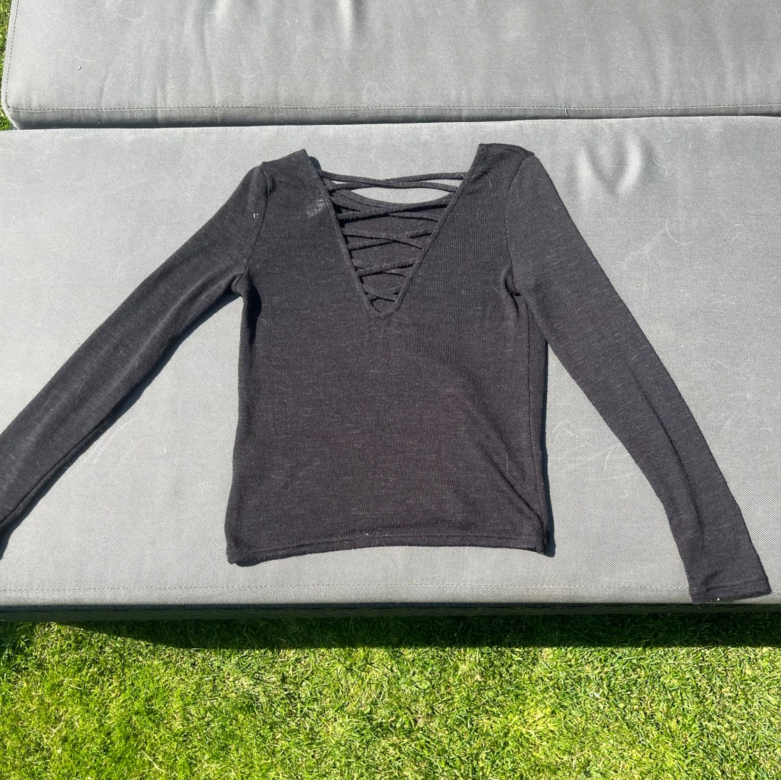 Svart långärmad topp med snygg snörning och v-ringning i ryggen. Toppen har en tight passform och är perfekt för dig som gillar stilrena plagg med en twist. Enkel att matcha med både jeans och kjol.