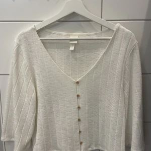 Vit topp med bruna knappar i väldigt bra skick. Har halvlånga bredar ärmar