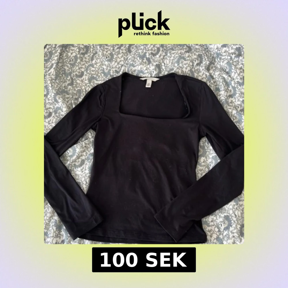Svart långärmad topp från H&M i storlek XS. Toppen har en fyrkantig urringning🩷
