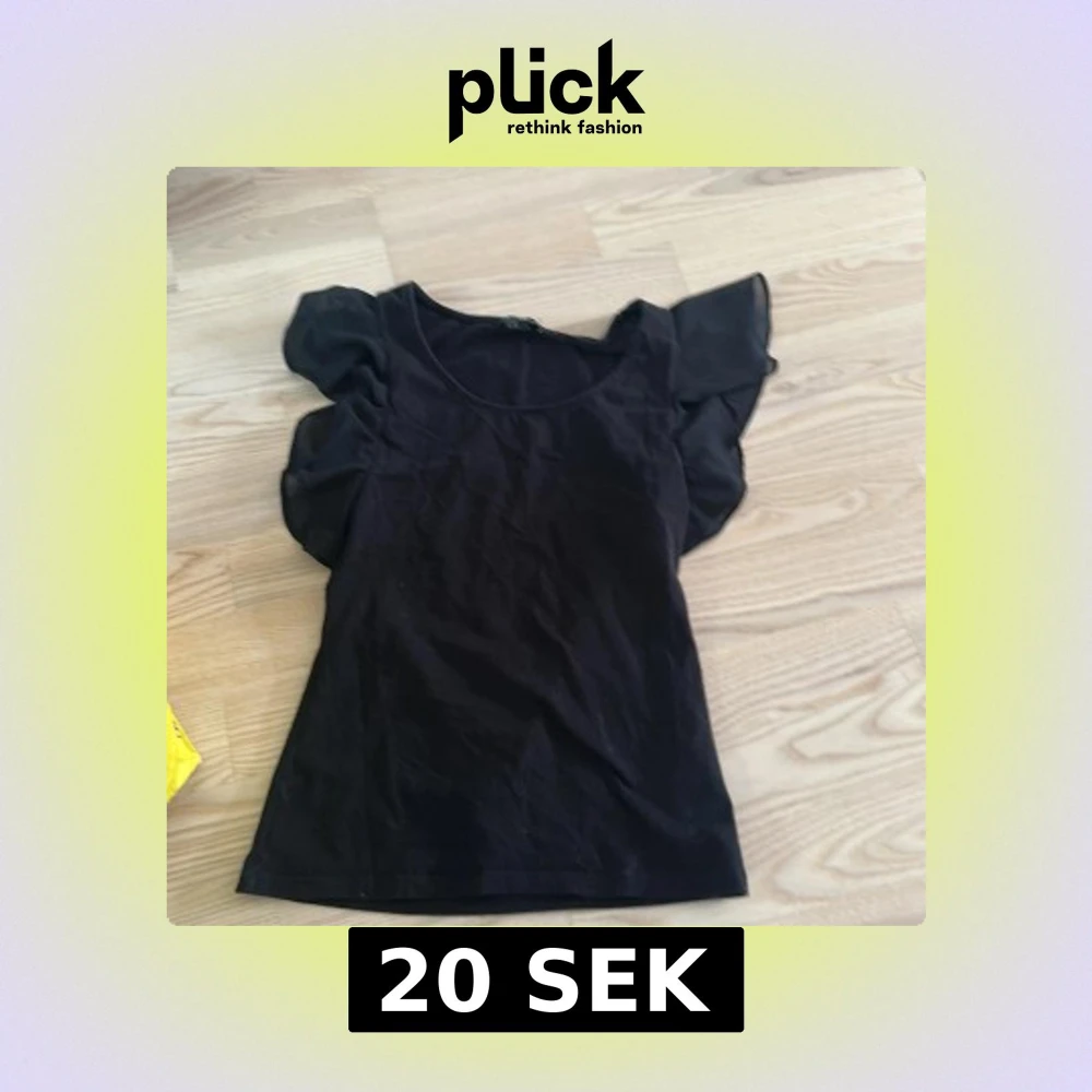 Snygg svart topp med bred rund halsringning och stora volangärmar i transparent tyg. Perfekt för dig som vill ha en enkel men ändå trendig look. Toppens kropp är i ett mjukt tyg och ärmarna ger en extra touch.