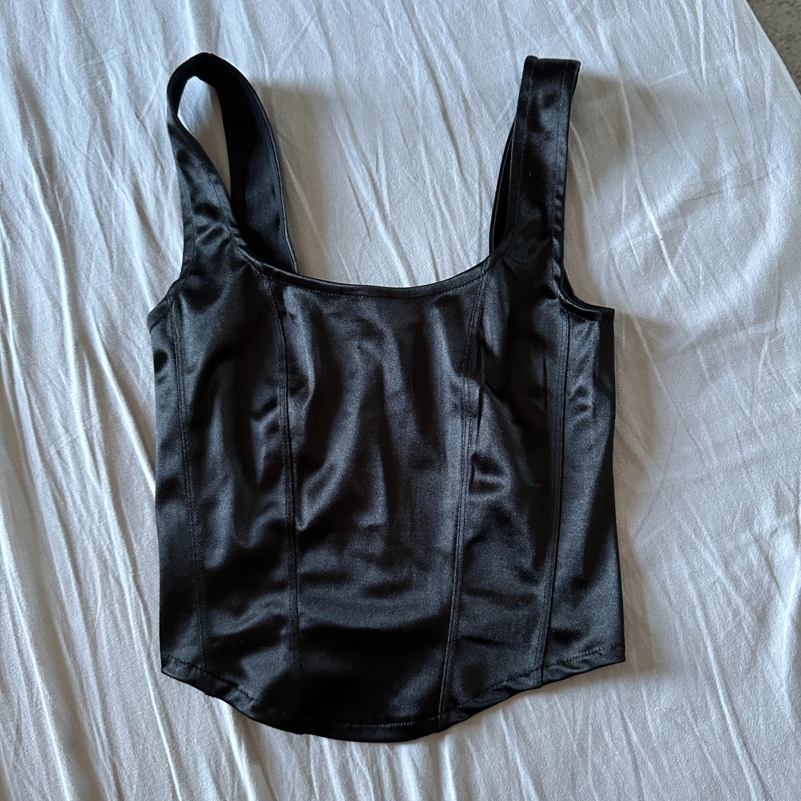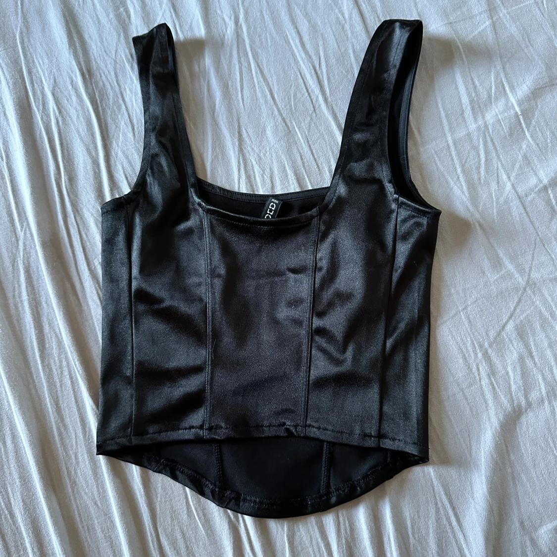 Jättesnygg glansig fest topp som är något längre fram än bak. Stl xs