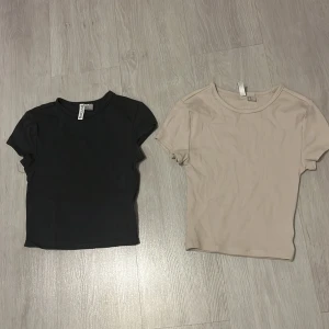 Två stilrena kortärmade toppar i svart och beige. Perfekta basplagg för garderoben med en normal passform och rund halsringning.