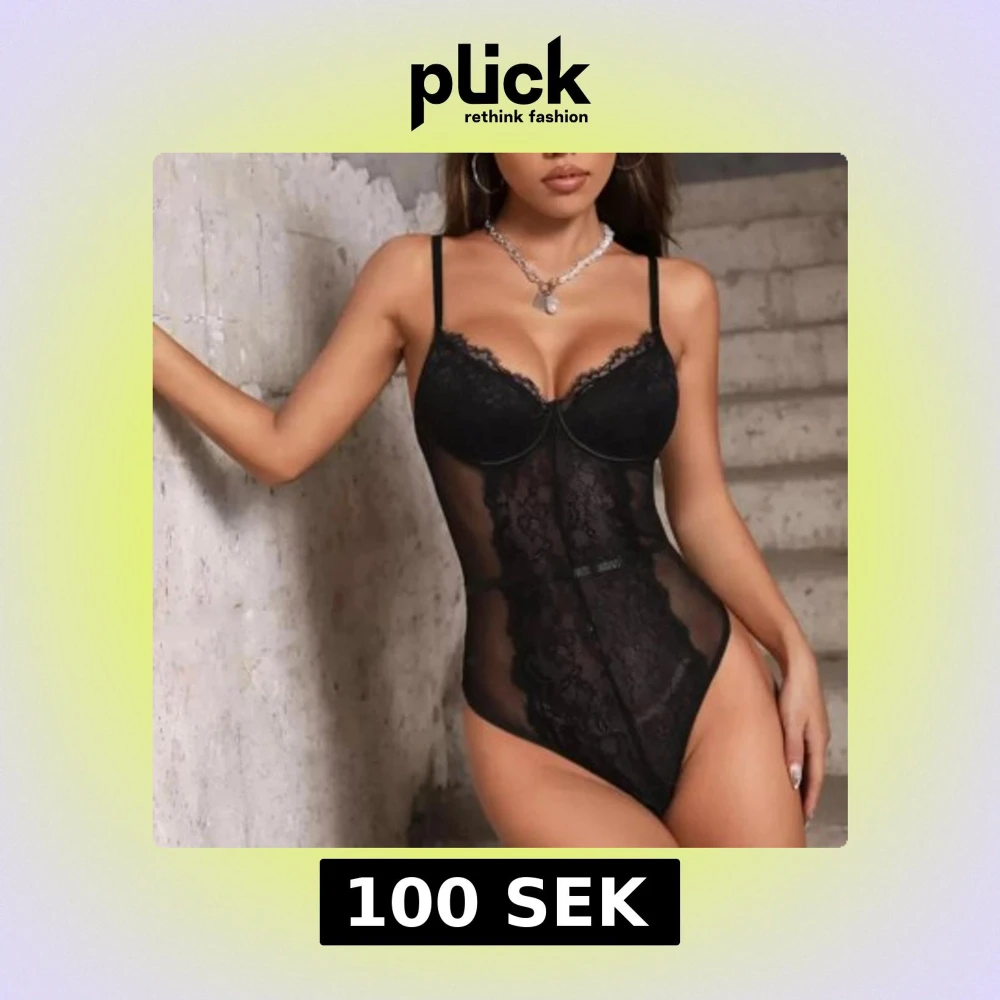 Säljer en svart bodysuit med tunna axelband och vacker spetsdetalj framtill. Den är helt oanvänd fast den gick inte att skicka tillbaka så säljer den här.