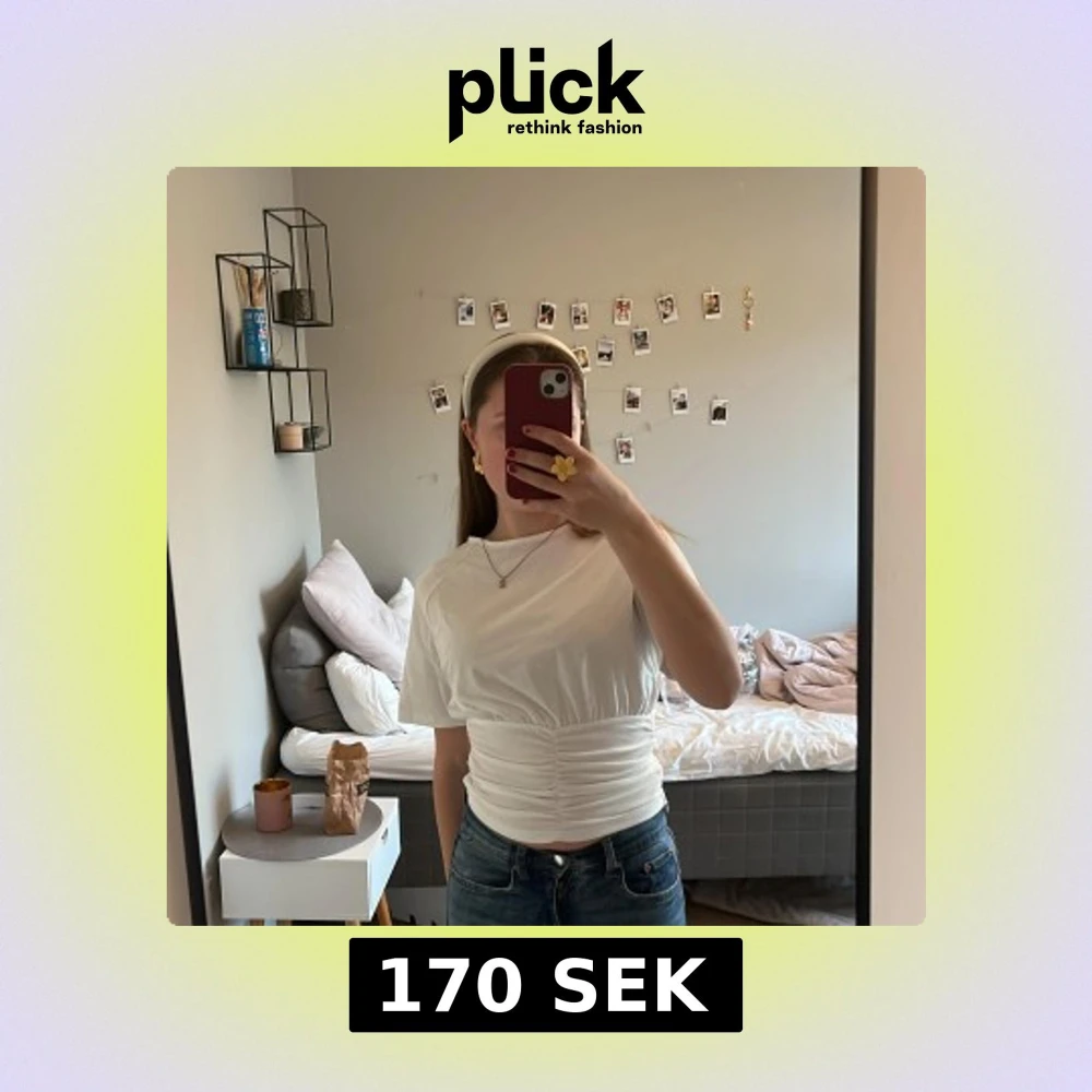 Säljer en vit topp med korta ärmar och snygg ”indragning” i midjan som ger en cool rynkad effekt. Toppen har rund halsringning och är i mjukt bomullsmaterial. Perfekt att styla med jeans eller kjol för en trendig look. Helt nyinköpt med prislapp kvar, säljer då den var förliten. Skriv för fler bilder 💕🙌🏻