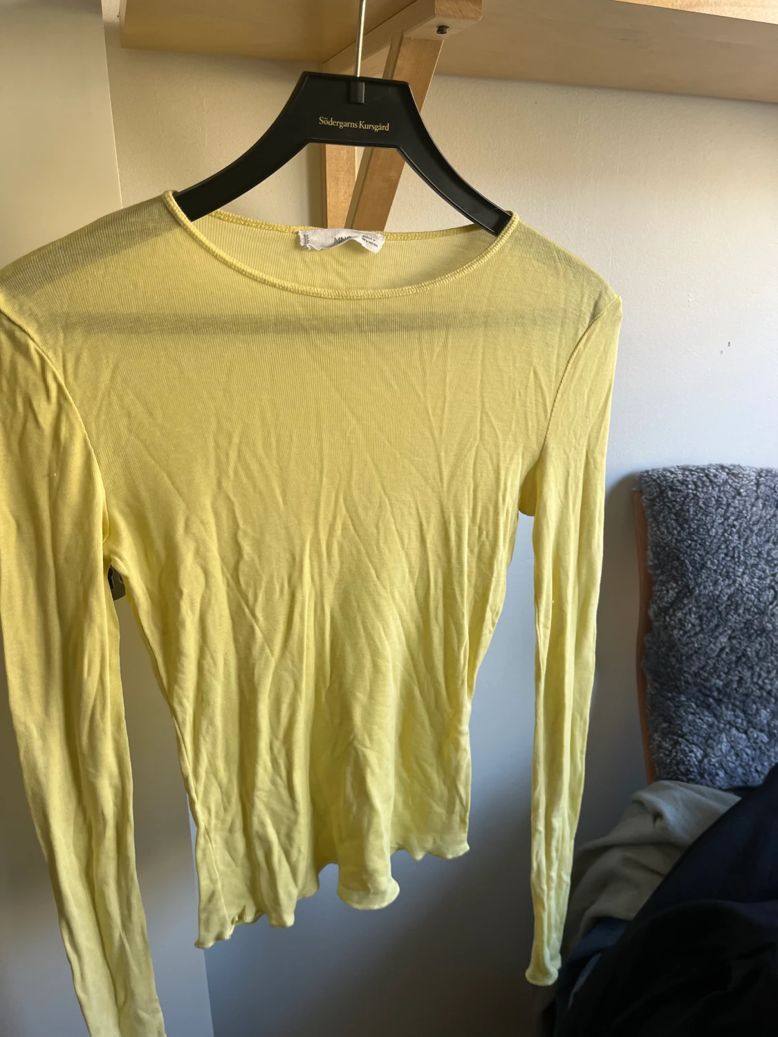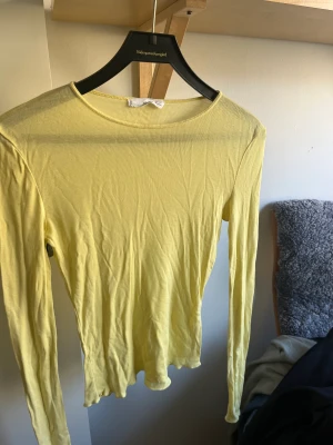 Gul tunn tröja från mango. Liknar de från intimissimi då den är lika tunn och har samma båtringning vid halsen. Lite genomskinlig men inte så mycket. I perfekt skick