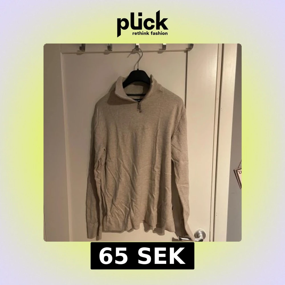 Beige långärmad tröja från Jack & Jones med halv dragkedja vid kragen. Tröjan är i mjukt material och har ribbade muddar vid ärmslut och nederkant. Perfekt för lager-på-lager under höst och vinter. Den är i stl L men passar som S