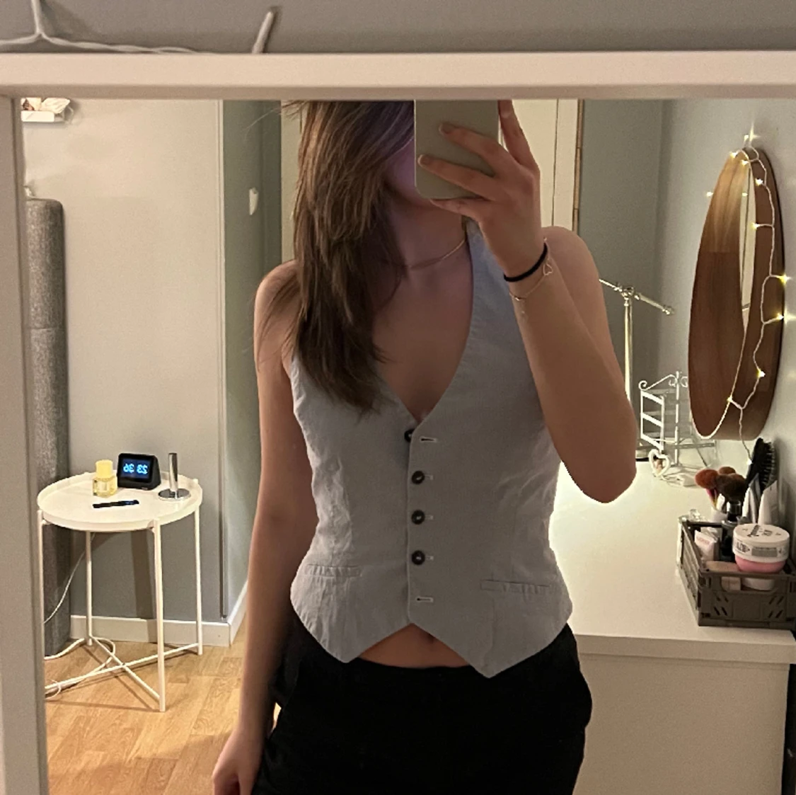 Superfin västtopp som passar perfekt till fest🙌🏼 I nyskick!💕 (är tunnt blå vit randig men syns ej på bilderna, så skriv för fler bilder😊)