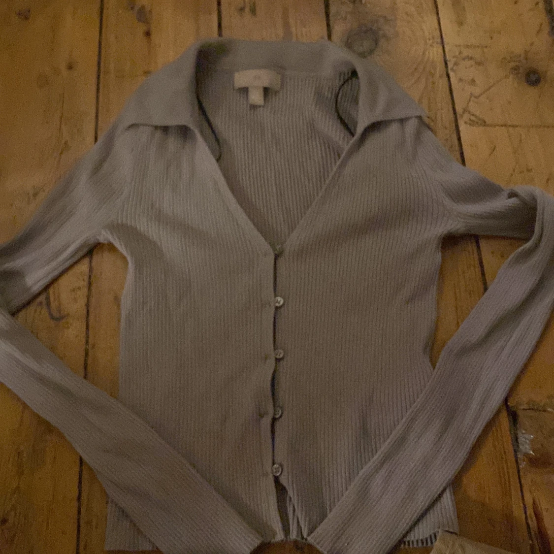 En kallgrå ribbstickad topp från H&M. Har använts 3 gånger sedan köpet så den är i princip i ny-skick.