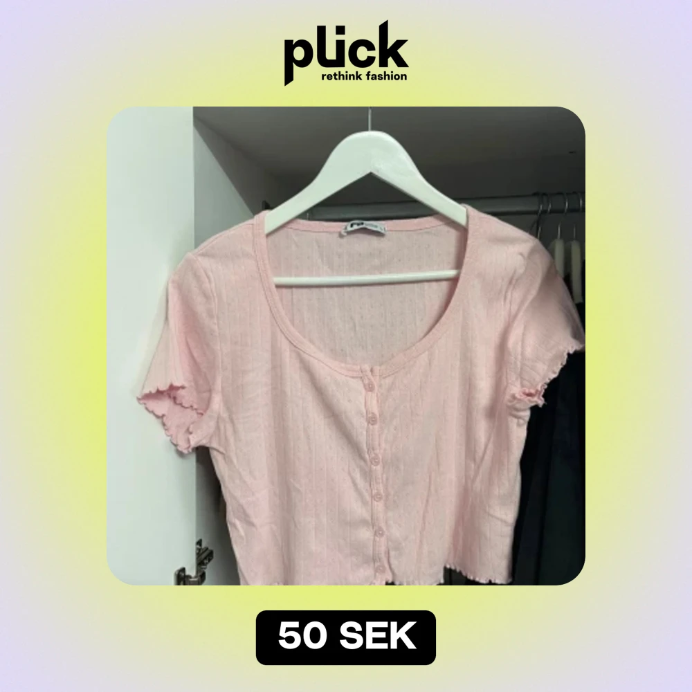 Säljer en söt rosa topp från FB Sister. Den är kortärmad och har små knappar framtill. Storlek L, passar M. Toppen är croppad och har en fin ribbad struktur med små hålmönster. Perfekt för sommardagar eller en avslappnad vårlook!