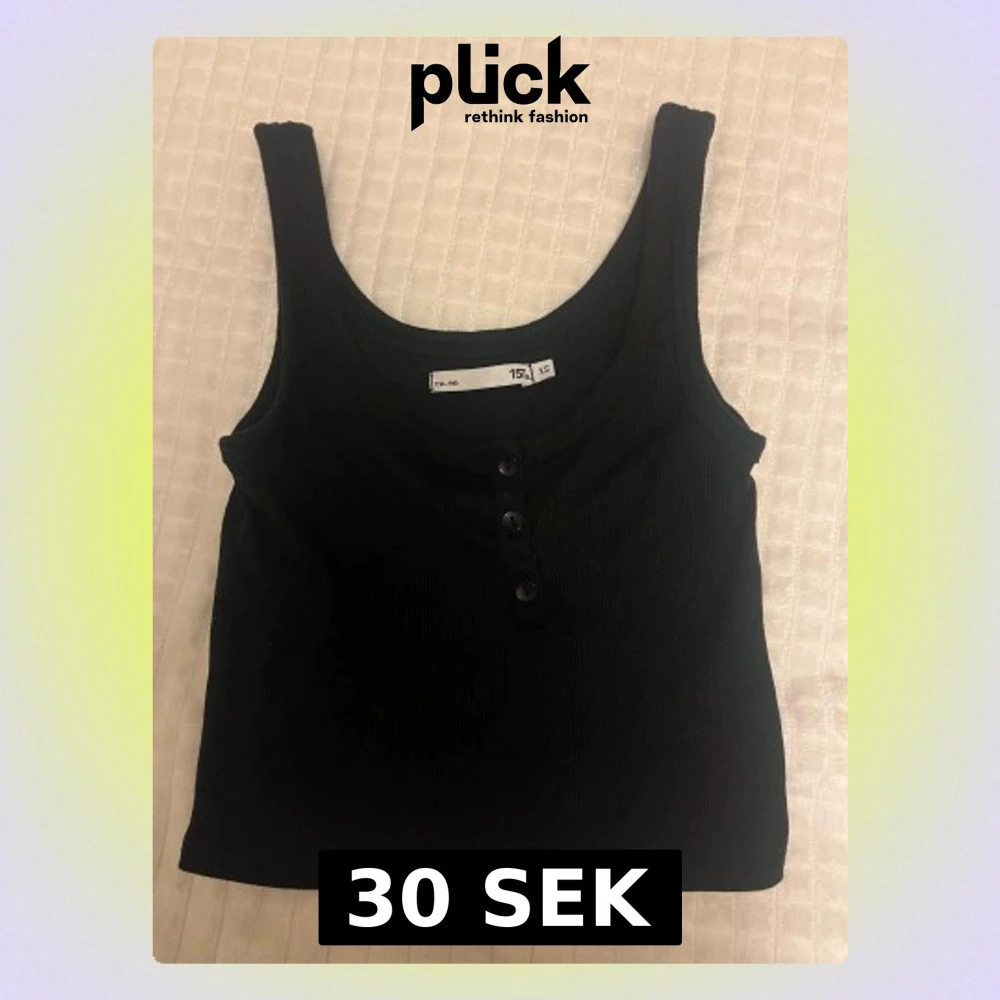 Svart croppad linnetopp från i ribbad bomull med rundad hals och tre knappar framtill. Extremt bra skick!!