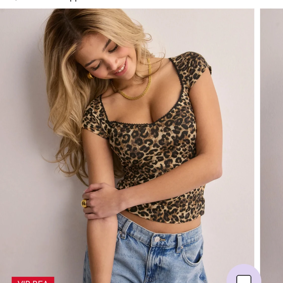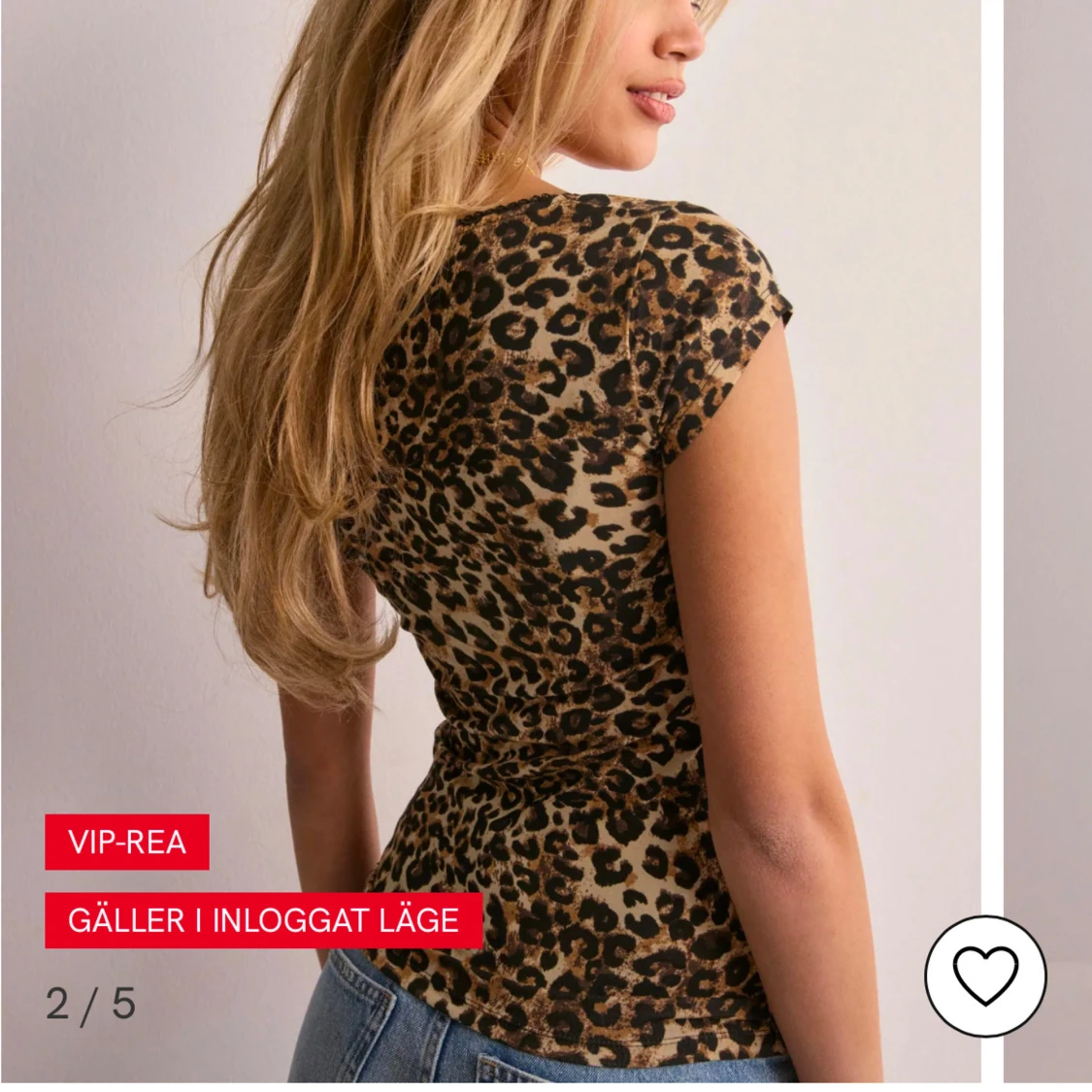 Trendig leopardmönstrad topp med korta ärmar och en figurnära passform. Perfekt för att ge en djärv touch till din outfit. Andvänd en gång.