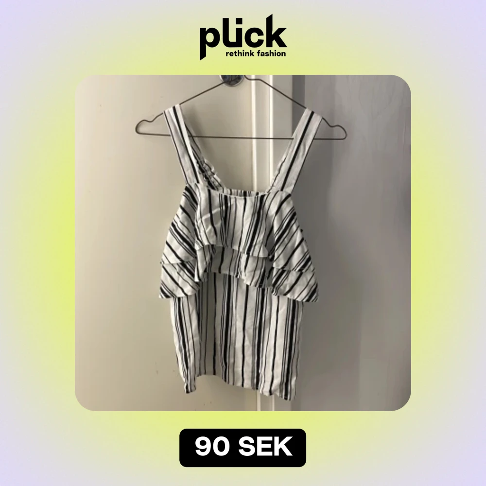 Linne - Säljer en snygg vit och svart randig linnetopp från Lindex. Perfekt för varma dagar med sin ärmlösa design och ribbade material. Passar både till jeans och shorts för en avslappnad look.