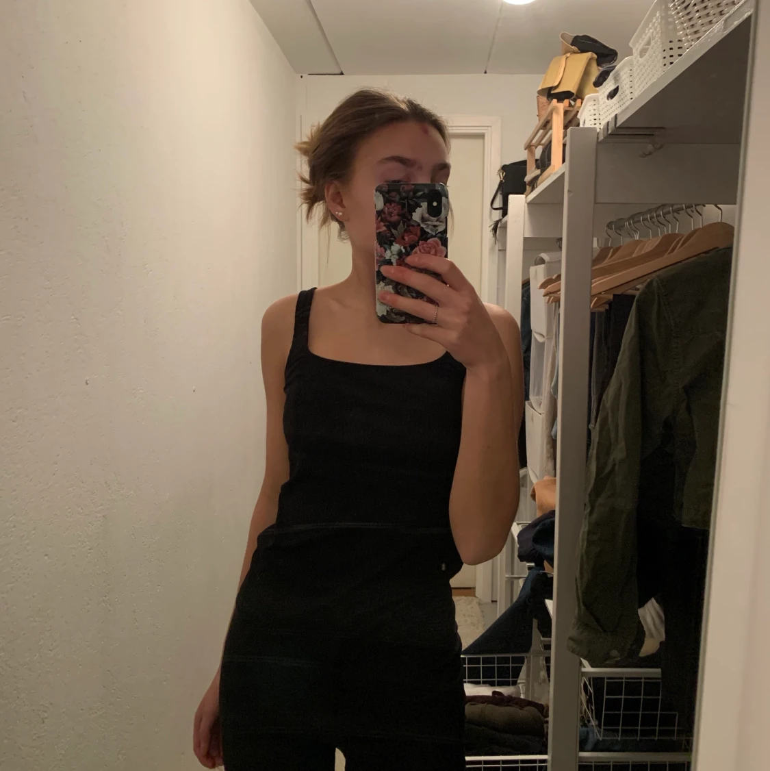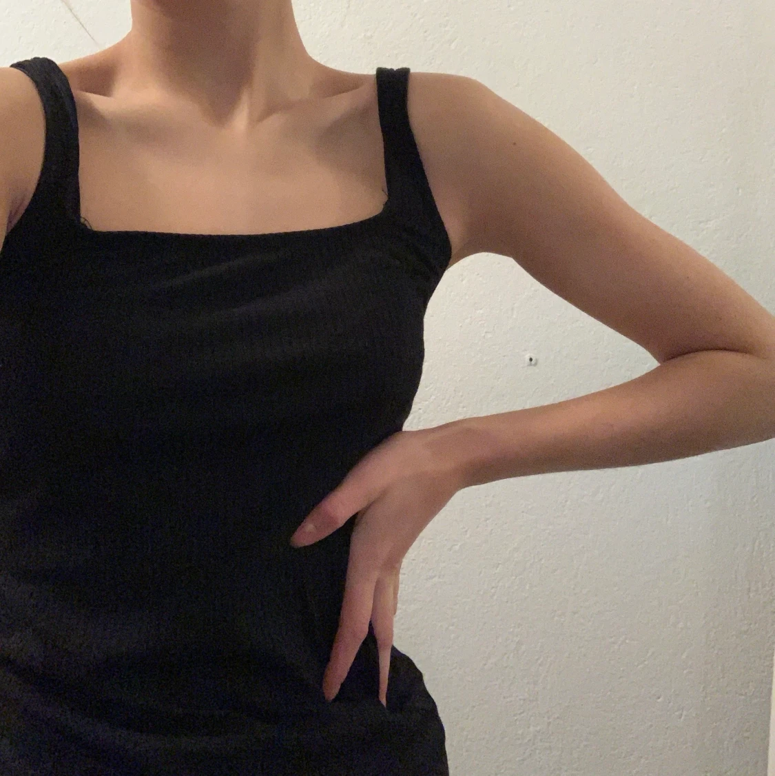 Svart ribbat linne med rak urringning.
