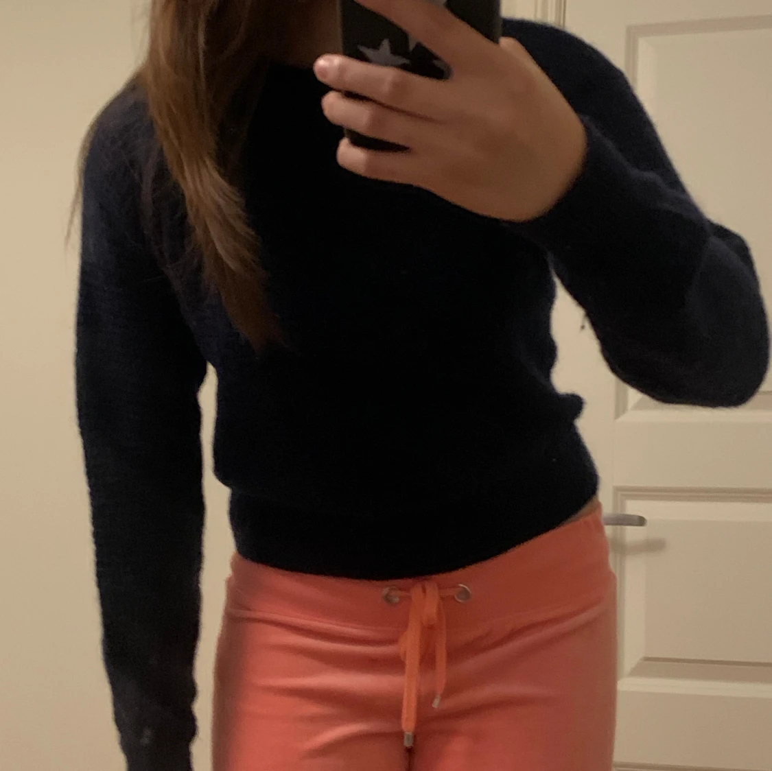 enfärgad mörk marinblå med rund hals och crop top