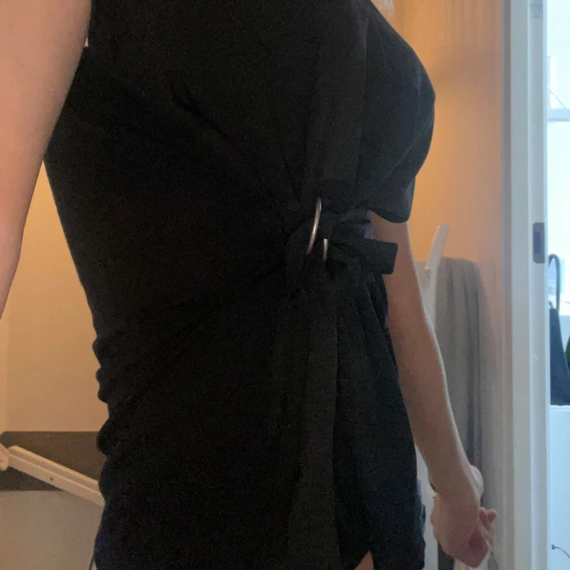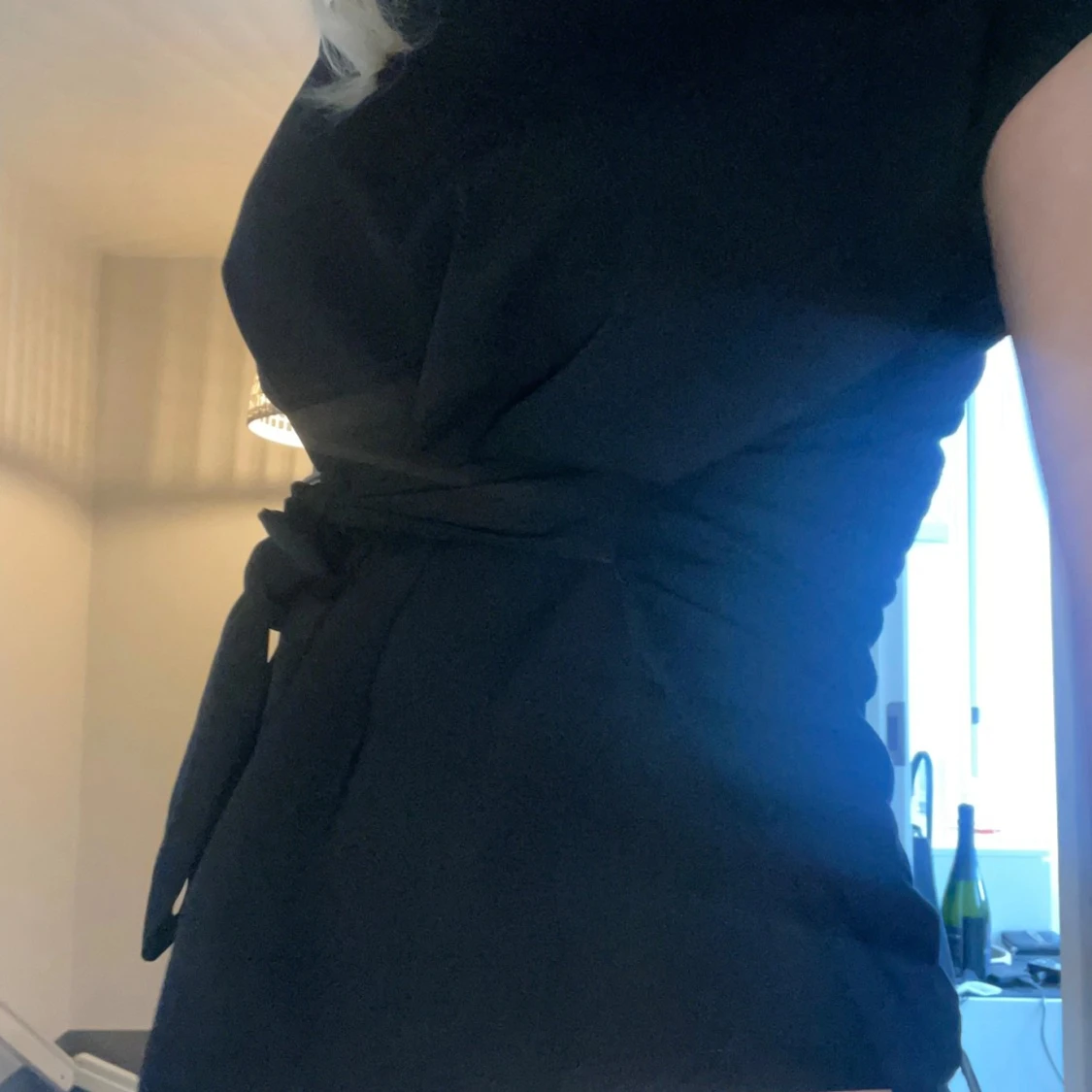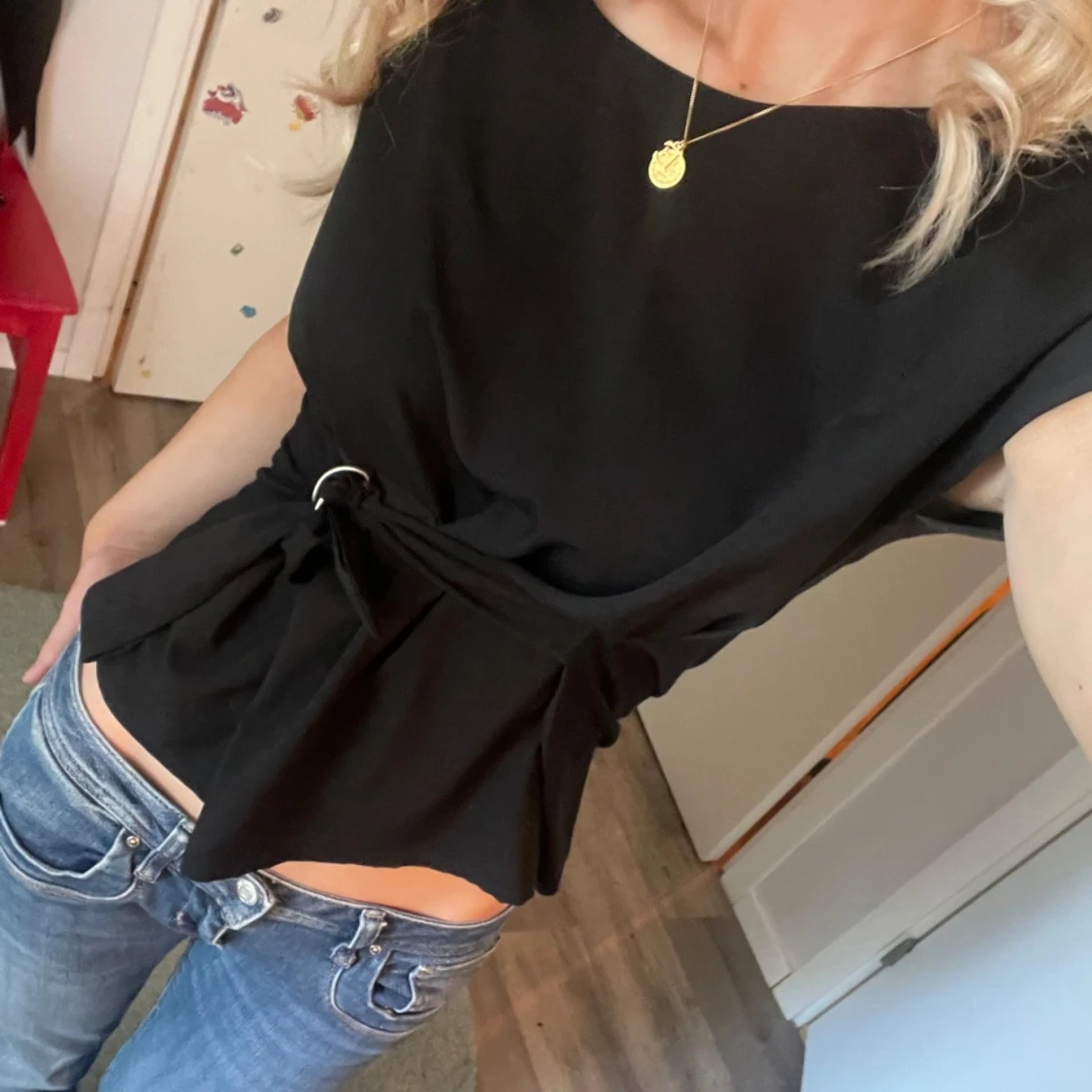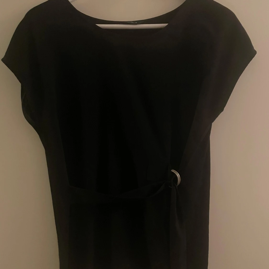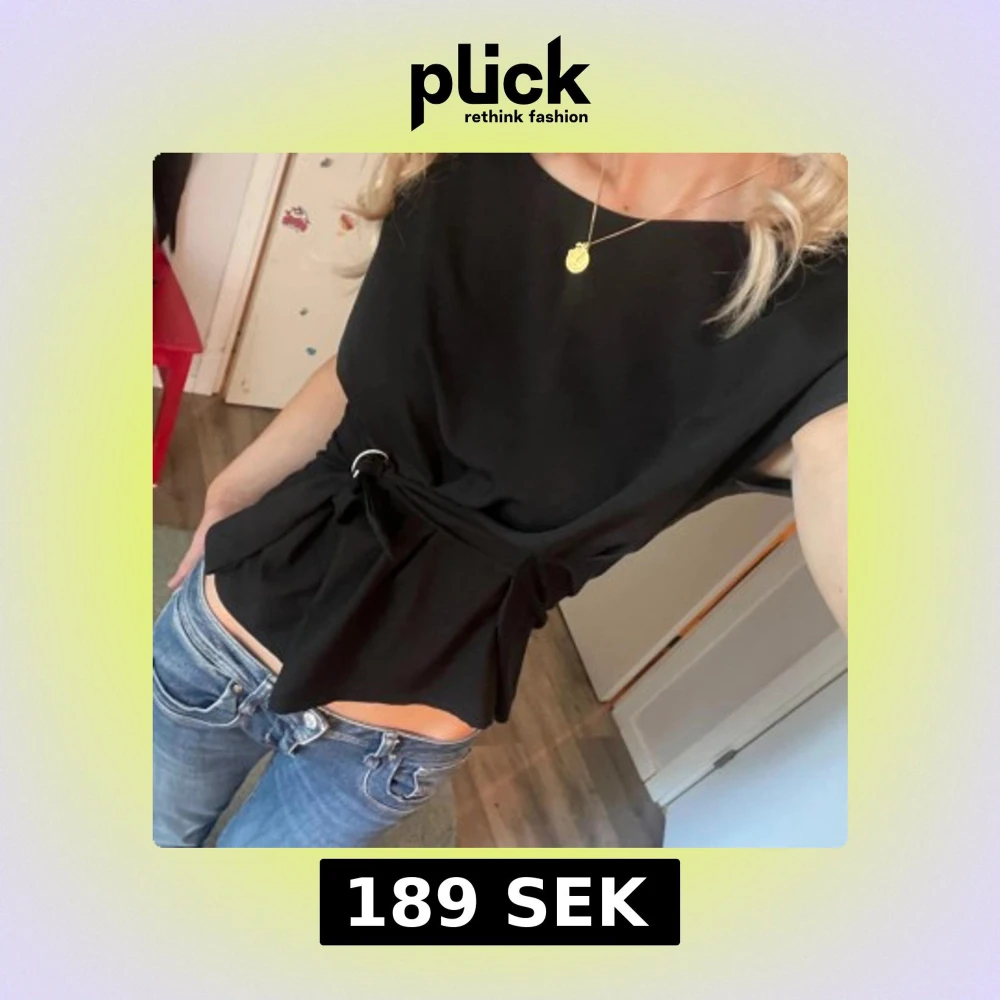 Svart blus från Lindex i storlek M men passar även S!😽 Knyt detalj i midjan och korta ärmar, går även att ha den bak och fram med knytet i ryggen💝💗