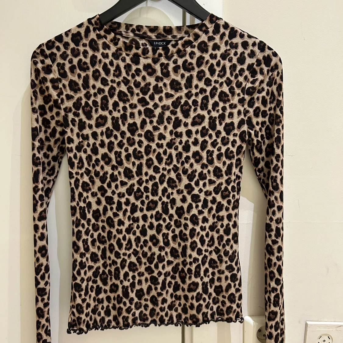 Säljer en långärmad topp från Lindex med leopardmönster i beige och svart. Toppen har en slim passform och är tillverkad i mjuk polyester. Ärmsluten har en söt volangkant som ger extra attityd. Perfekt för dig som gillar djurmönster och vill sticka ut.