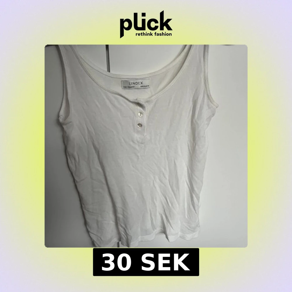 Vit ribbad linnetopp från Lindex med rund halsringning och tre snygga knappar framtill. Perfekt för varma dagar och enkel att matcha med allt. Tunn och mjuk bomullskvalitet som känns skön mot huden.