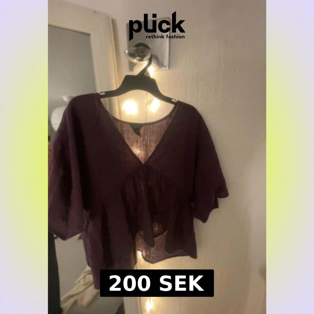 Säljer en lila blus från LINDEX med v-ringad hals och korta, vida ärmar. Blusen har en luftig och lätt struktur i ett transparent tyg, samt en volangdetalj framtill. Perfekt för dig som gillar avslappnad och trendig stil.